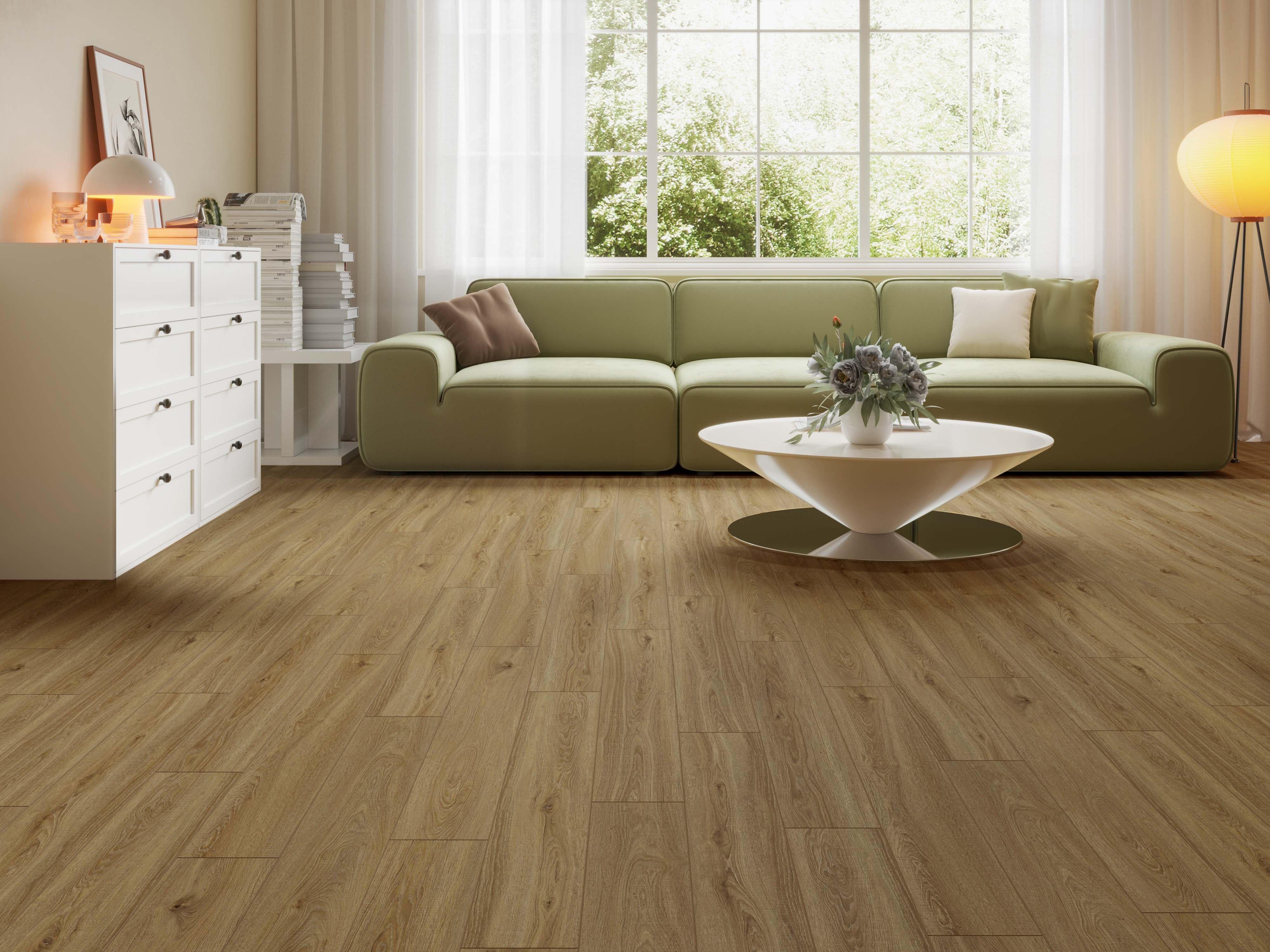 Exclusive to Floor & Decor, 12mm x 7in x 48in AquaGuard Performance Mountain Valley Waterproof Laminate Plank looks and feels like authentic hardwood. AquaGuard Performance is waterproof and provides lifetime protection against household spills, splashes and pet accidents. It can be wet mopped or even steam mopped, so you can install it in any room of the house, including full bathrooms, kitchens and basements. The unique waterproof core on AquaGuard Performance is so stable, the product is backed with the best warranty in the industry, lifetime residential and 20-year commercial.