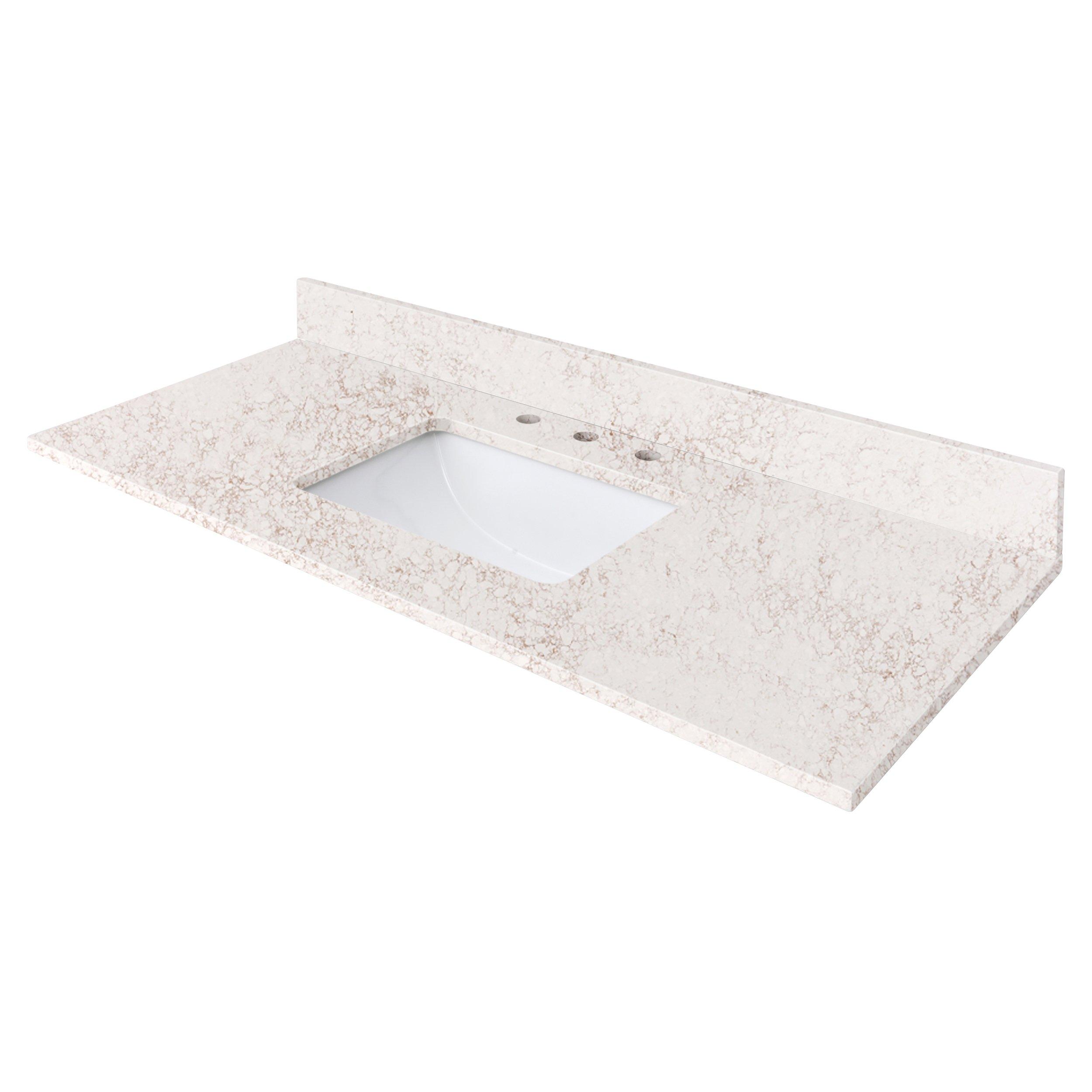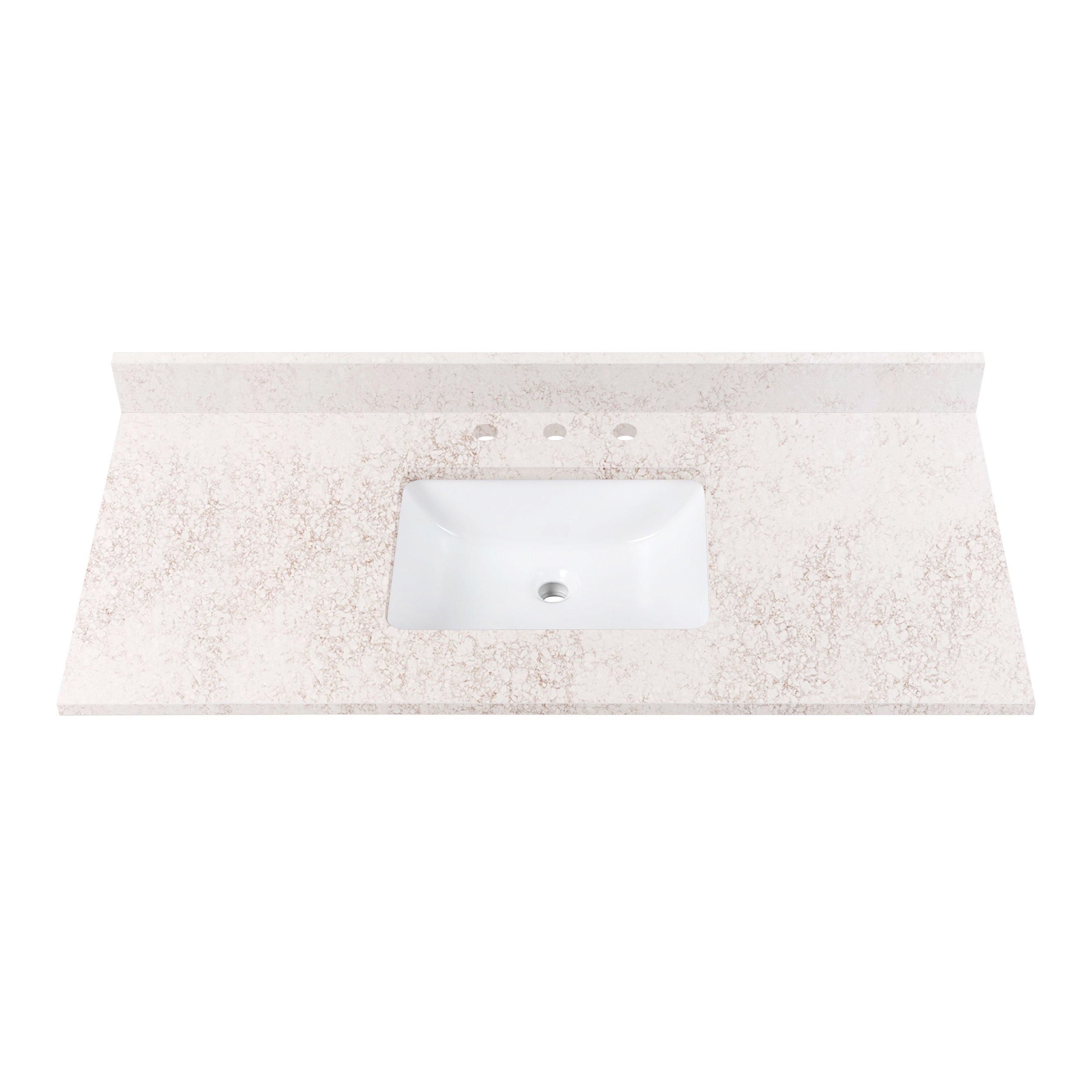 The sink position is offset and not directly centered on the vanity top to allow for more space on the side of the vanity.