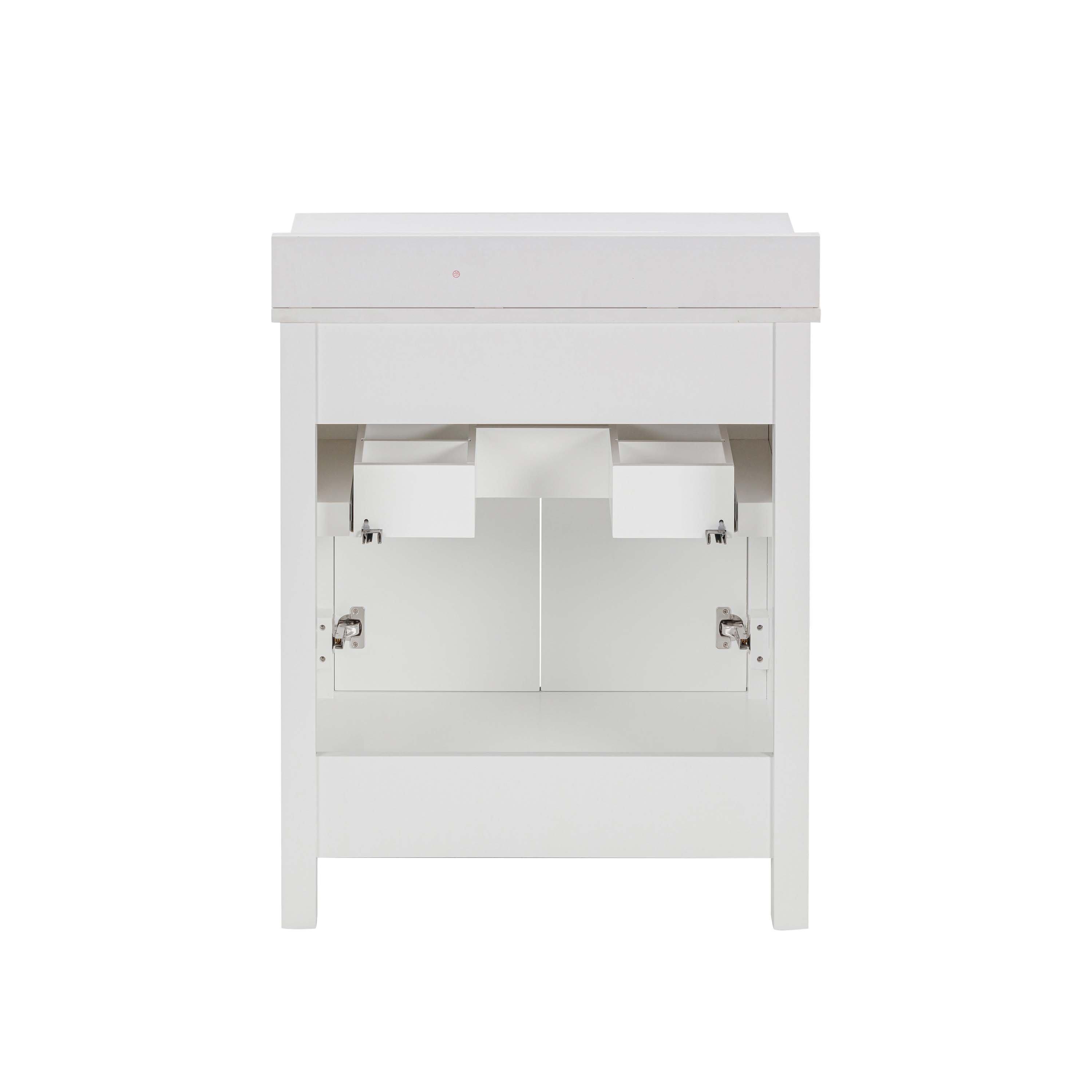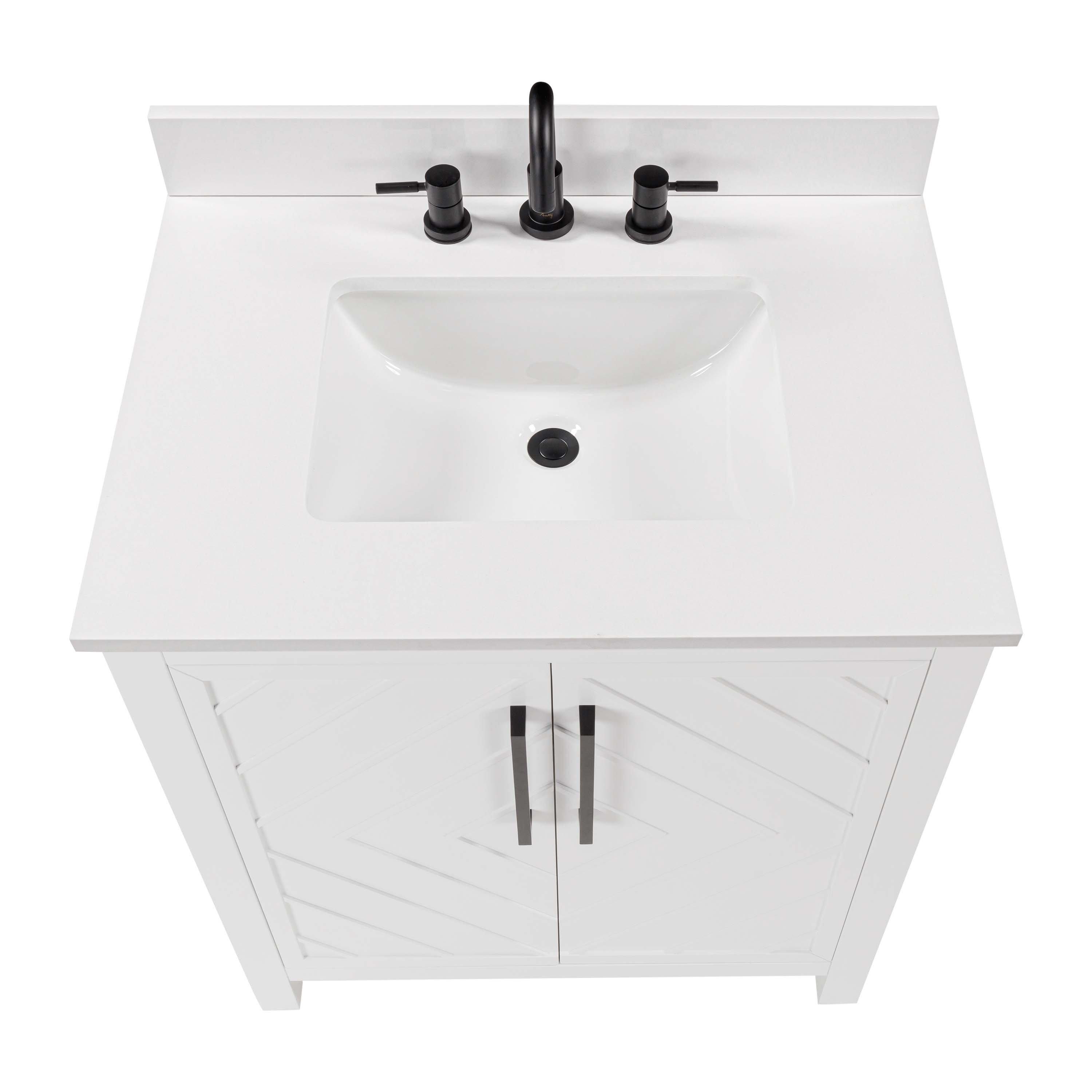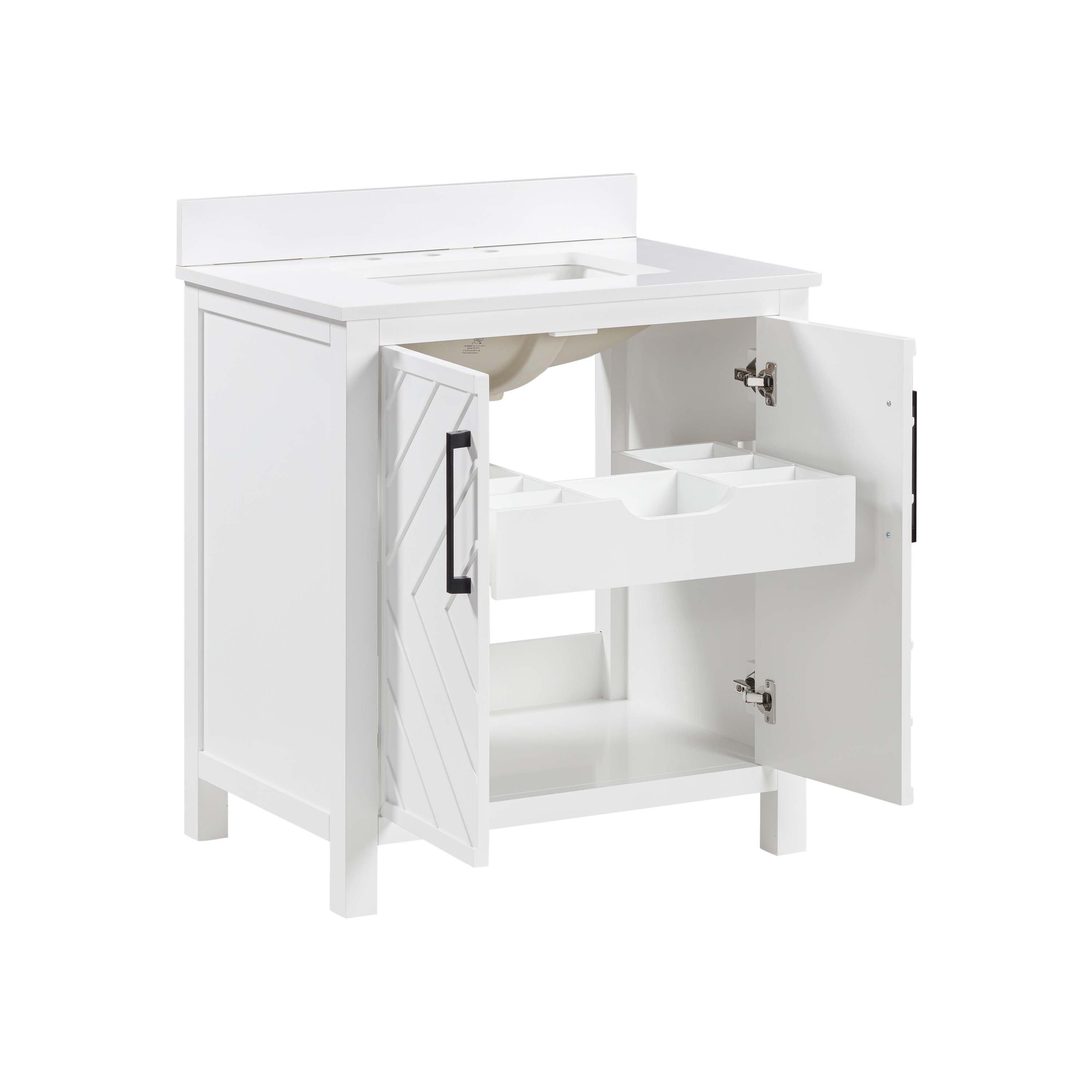 Complete your bathroom with the beautiful Bryce 31 in. White Vanity with Engineered Stone Top. This freestanding features durable mdf cabinets in stunning white with a white engineered stone vanity top and matte black hardware. A charming single undermount sink in brilliant white is included. The Bryce 31 in. White Vanity with Engineered Stone Top is a versatile choice to customize multiple bathroom settings.