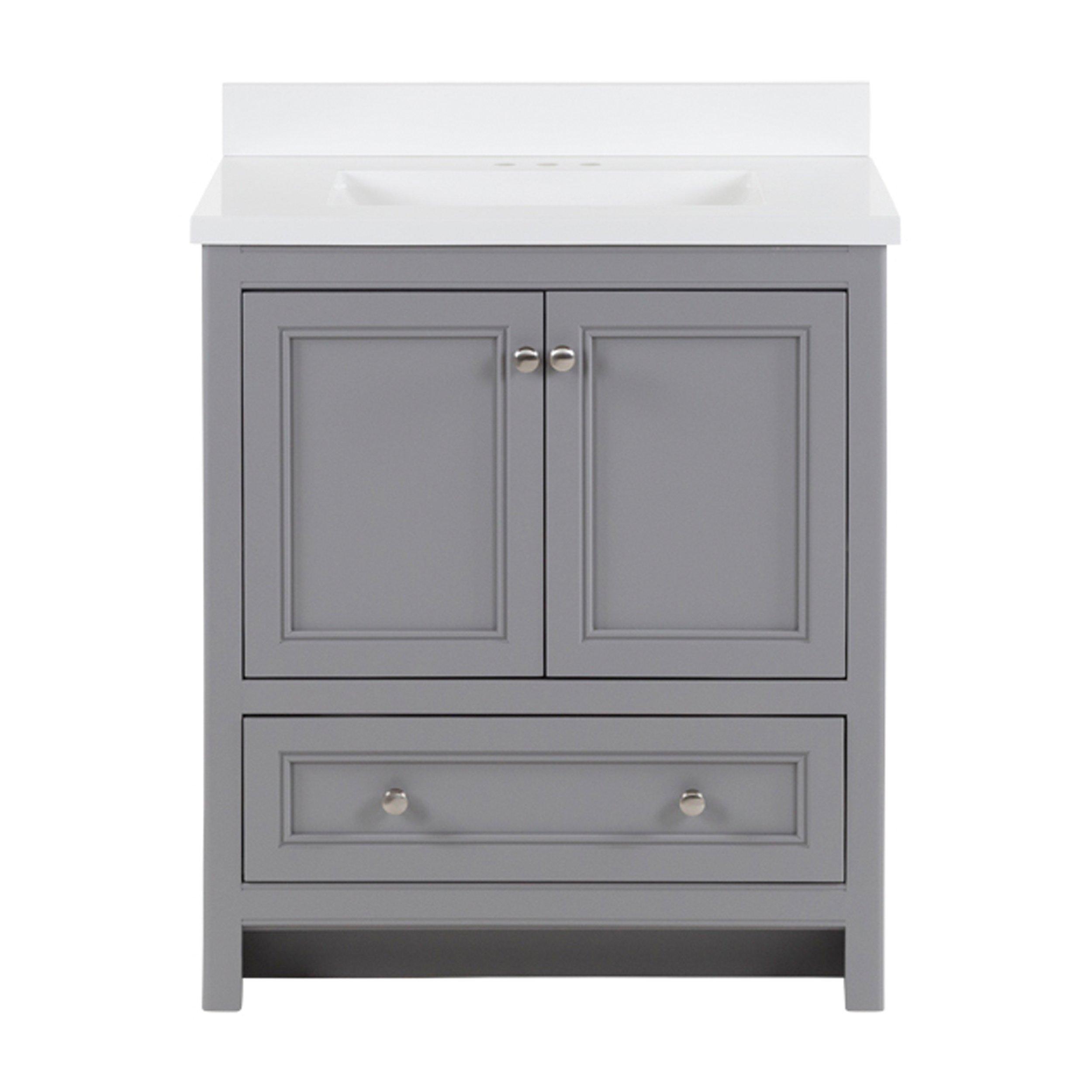1 Year LimitedTailor the look of your bathroom with the Sutherland 30 in. Gray Vanity Includes Mirror featuring gorgeous mdf in gray with 2 doors, 1 drawers, and 0 shelves. This piece is completed with beautiful brushed silver hardware and a single undermount white sink. The Sutherland 30 in. Gray Vanity Includes Mirror is a stunning addition to any bathroom setting.