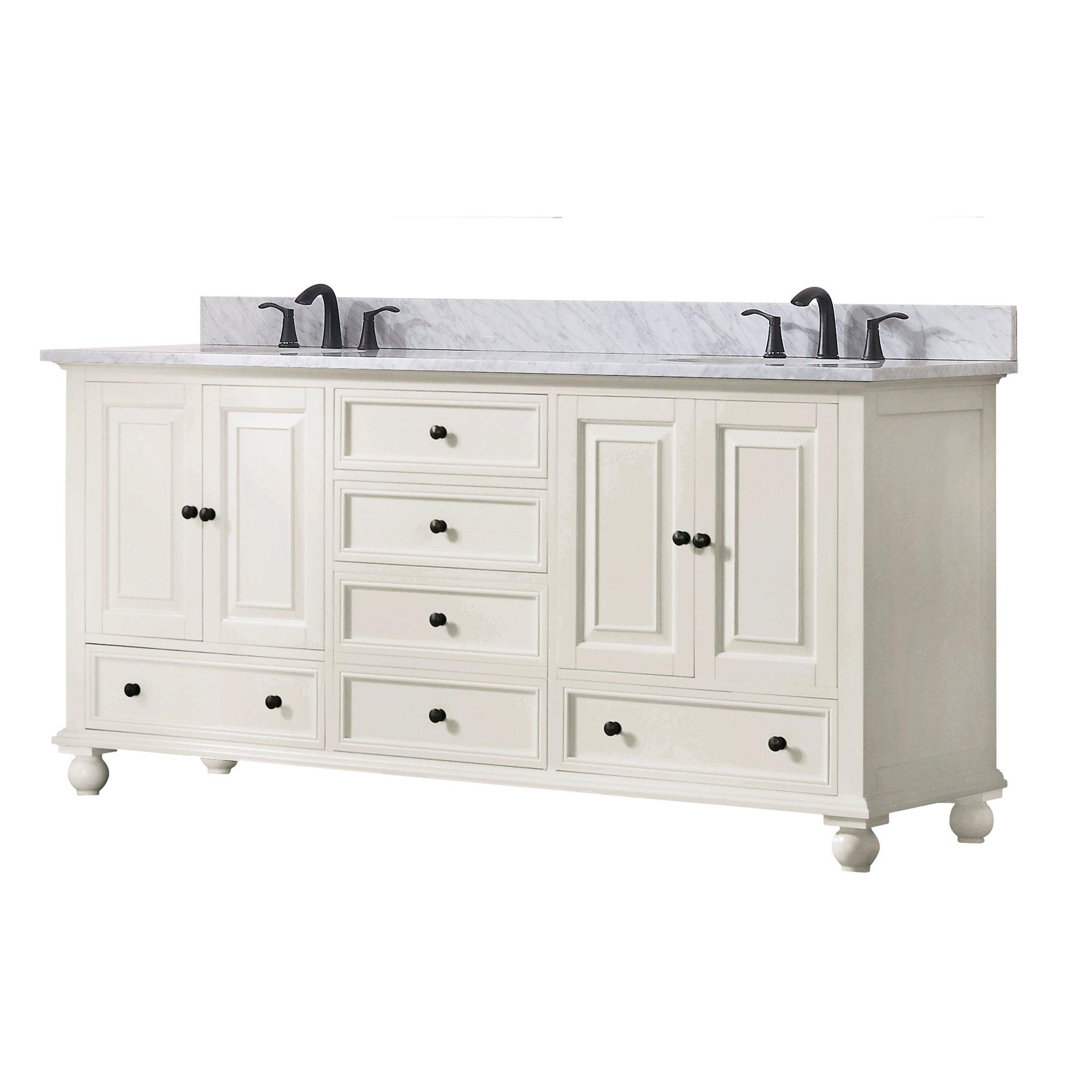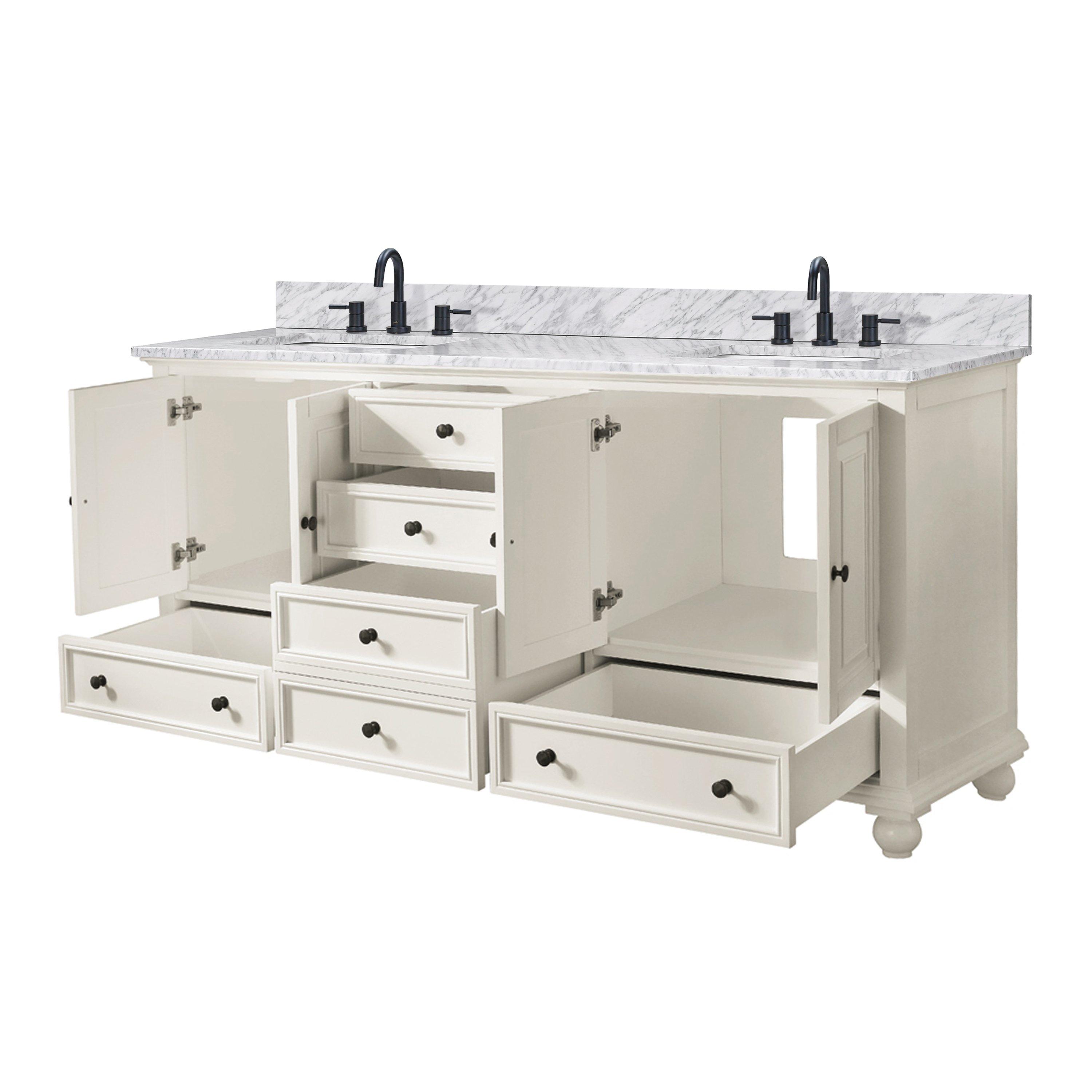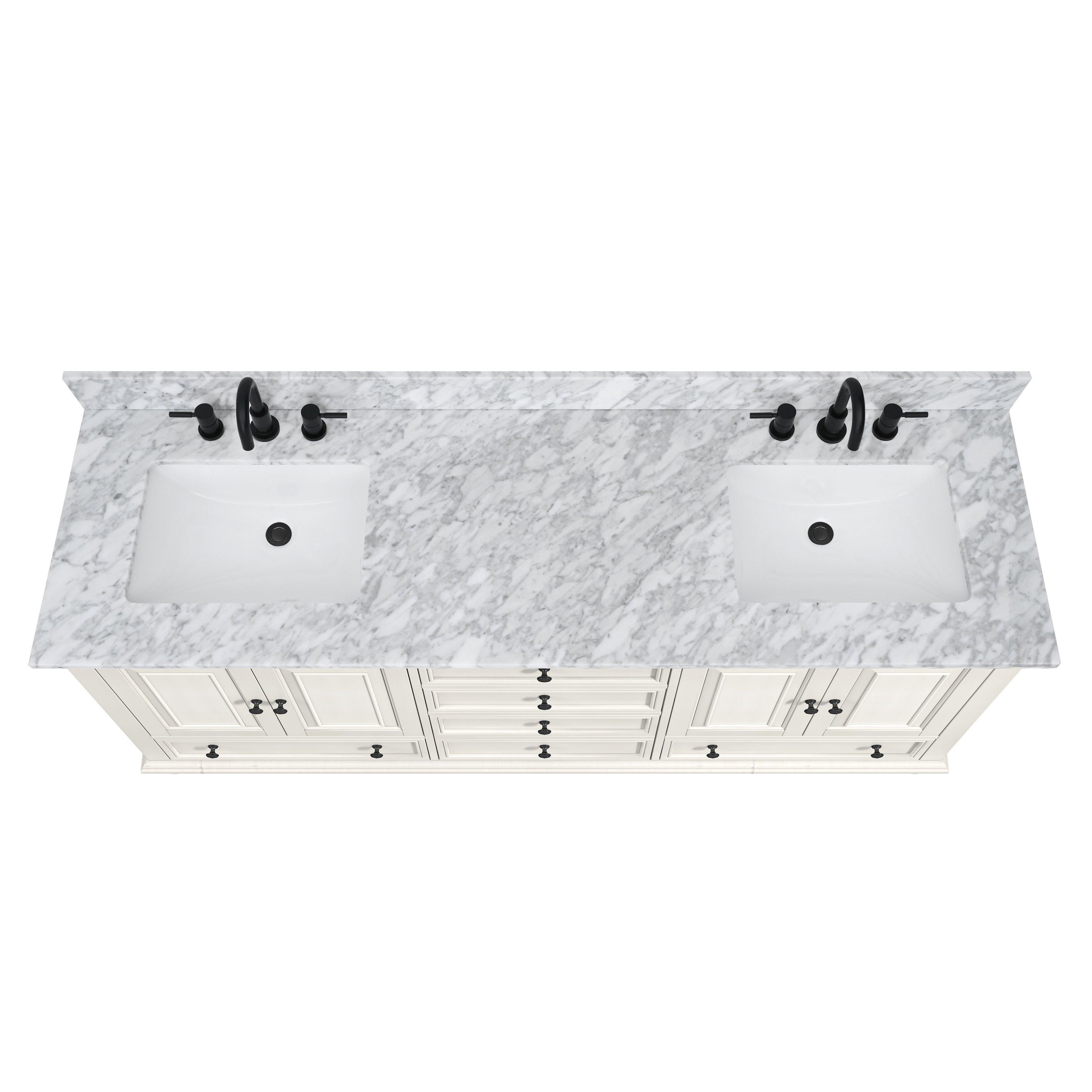 The sink position is offset and not directly centered on the vanity top to allow for more space on the side of the vanity.