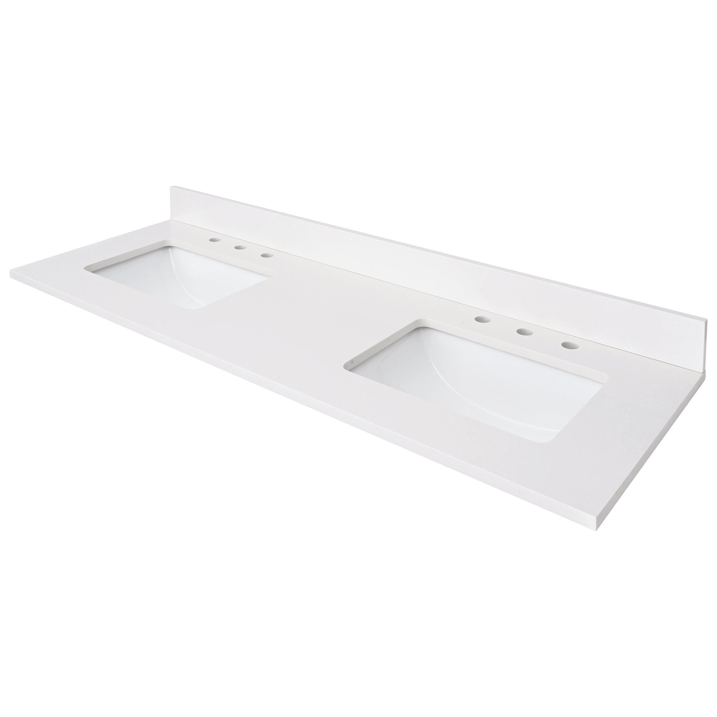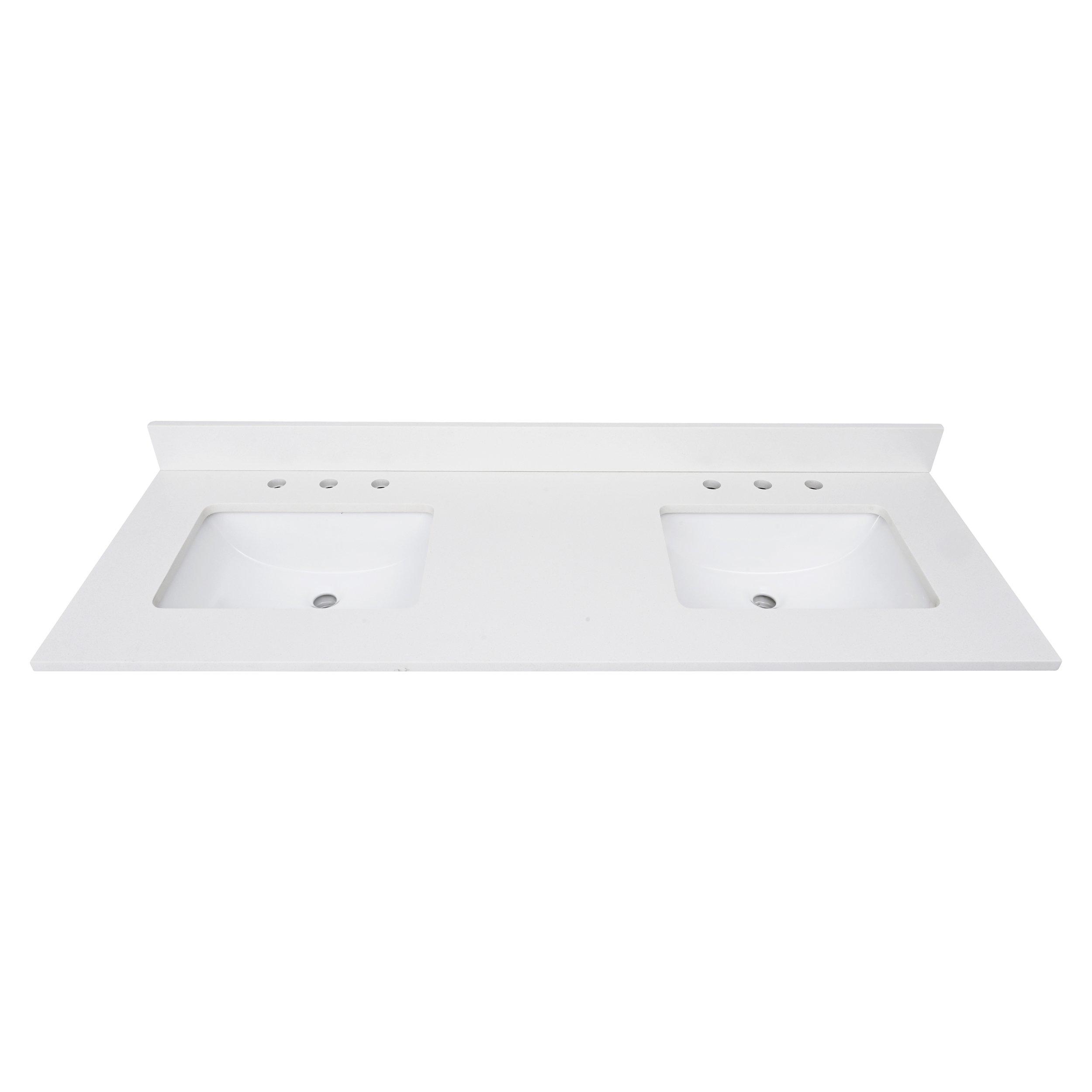 The sink position is offset and not directly centered on the vanity top to allow for more space on the side of the vanity.