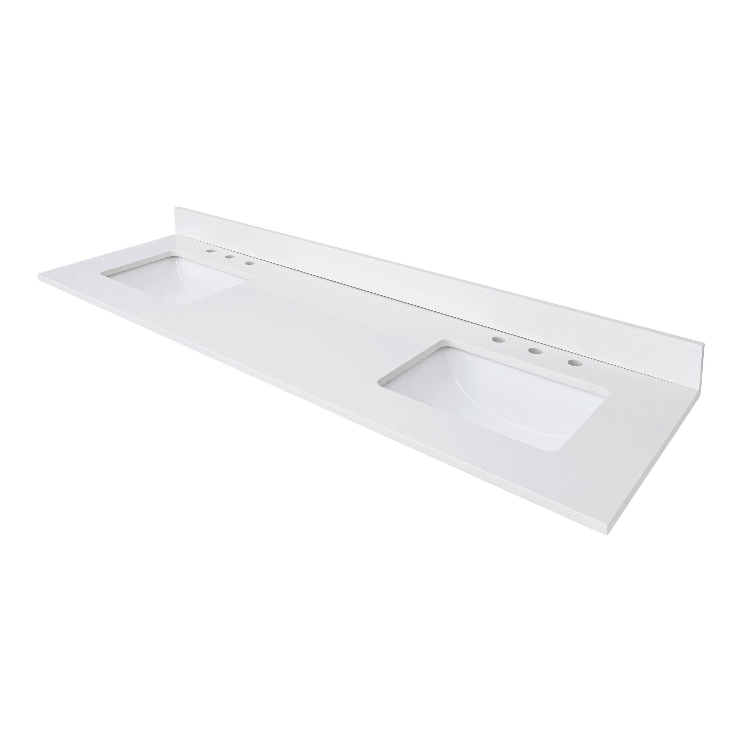 The sink position is offset and not directly centered on the vanity top to allow for more space on the side of the vanity.