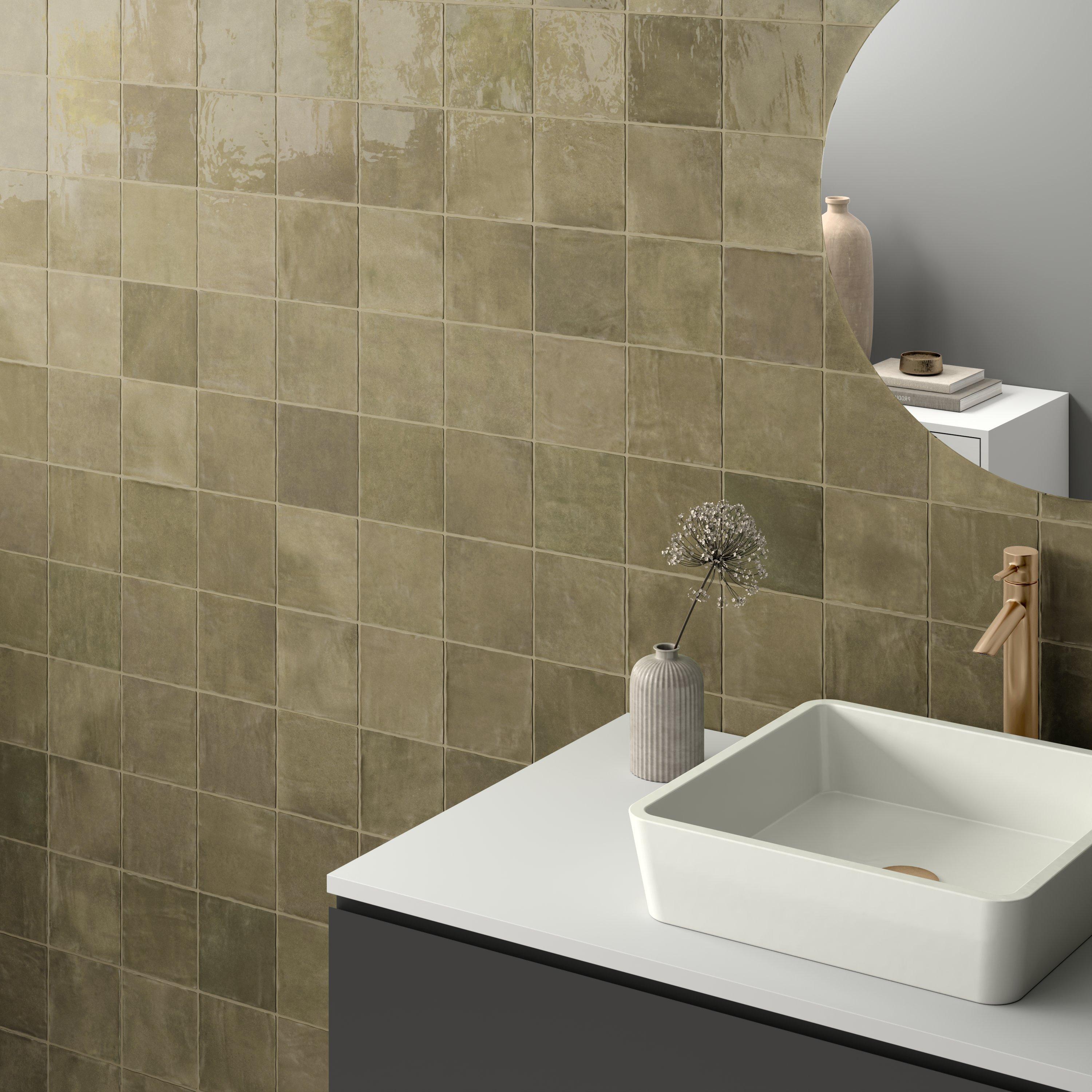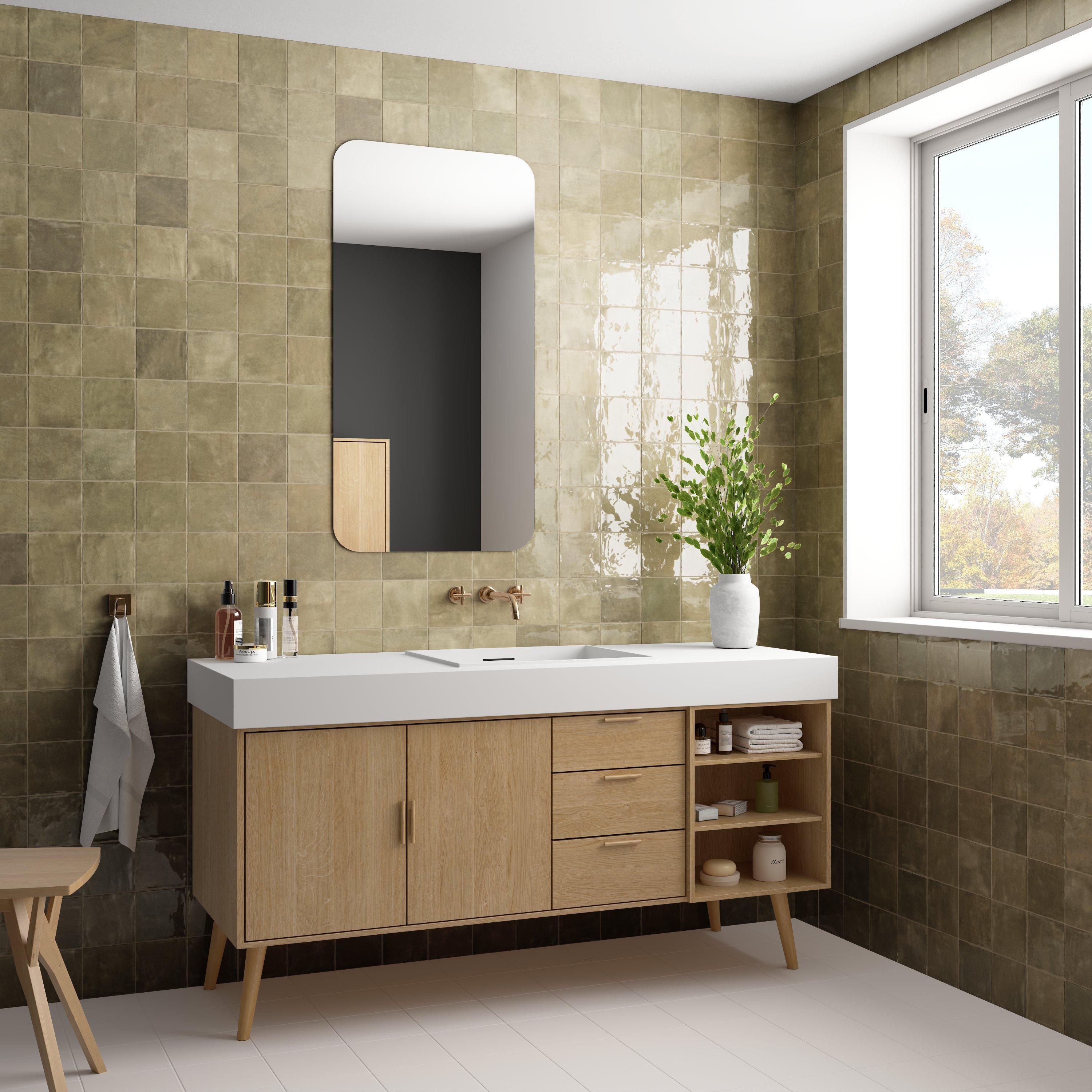 For an elevated look to your design, choose the Zellige Antique Sage Ceramic Tile with a high gloss finish. Use this green tile to add new visual interest in any space like the bathroom, kitchen, living room, and more.