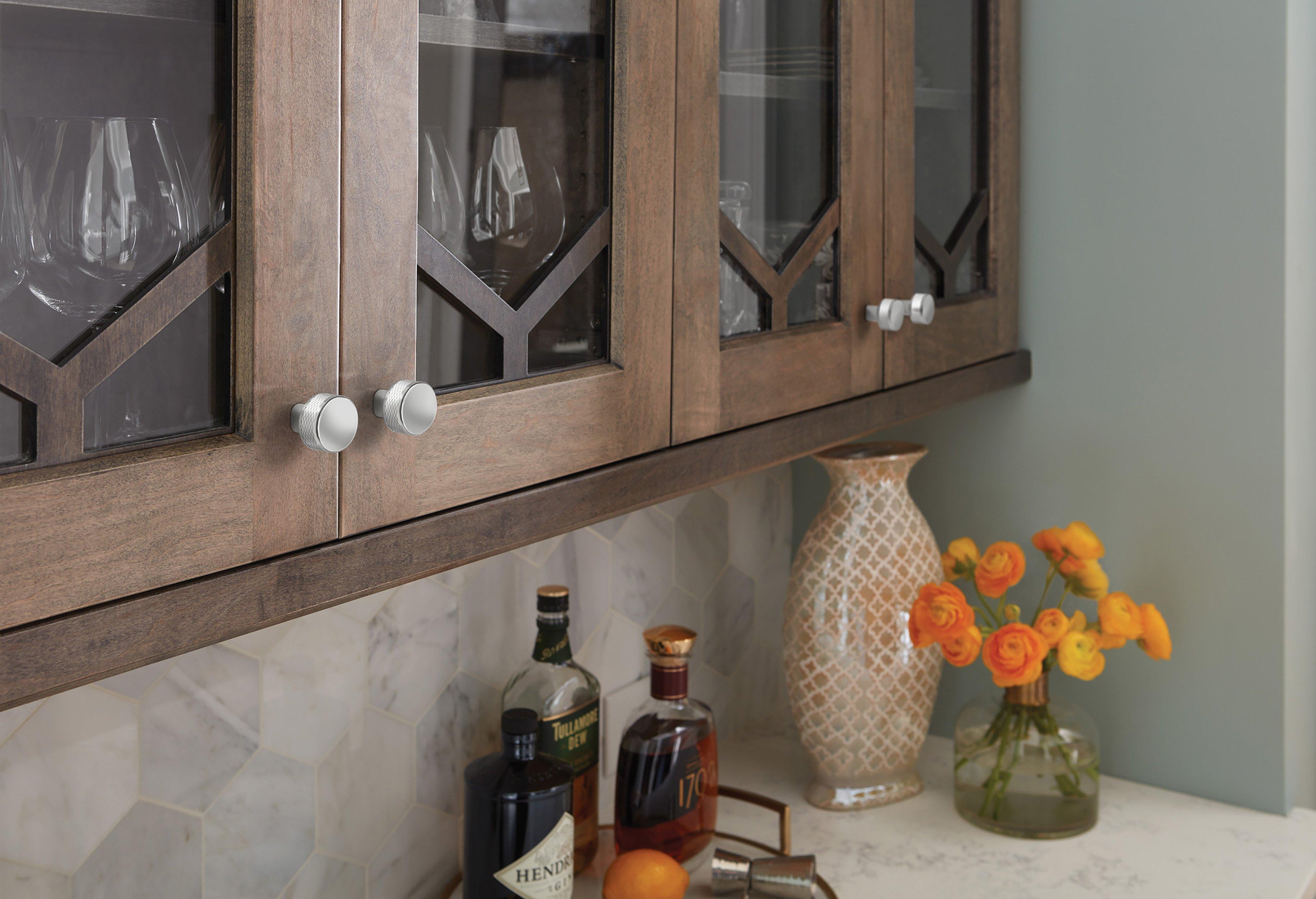 The Amerock Bronx 1-1/4 in. Polished Chrome Cabinet Knob is finished in polished chrome polished. The subtle knurling of the Bronx collection adds a sophisticated and modern industrial twist to the traditional bar pull, certain to add designer flair to any space.