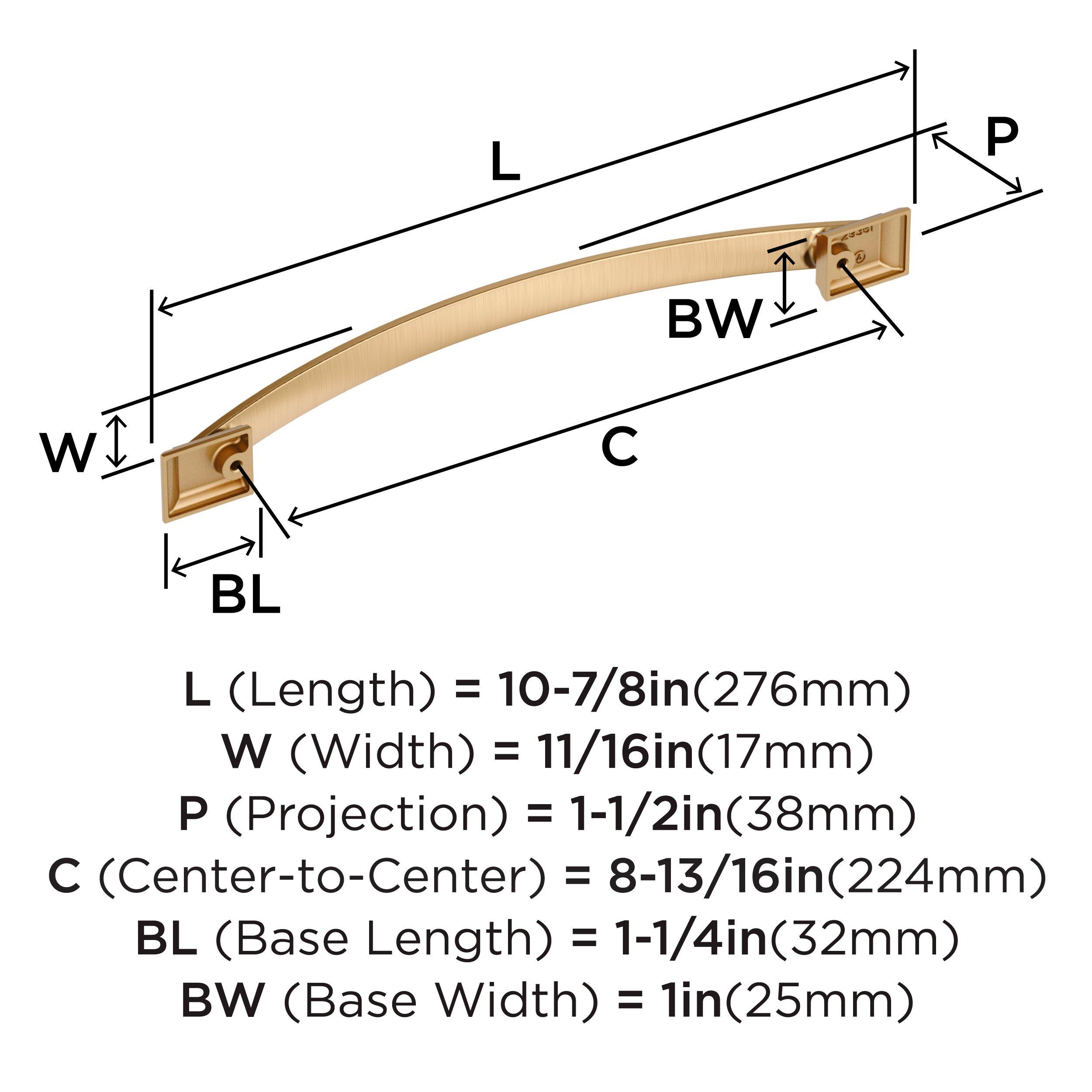 The Amerock Candler 8-13/16 in. Center-to-Center Champagne Bronze Cabinet Pull is finished in champagne bronze satin. With strong lines and soft curves, the Candler collection offers a casual feel that imparts timeless character