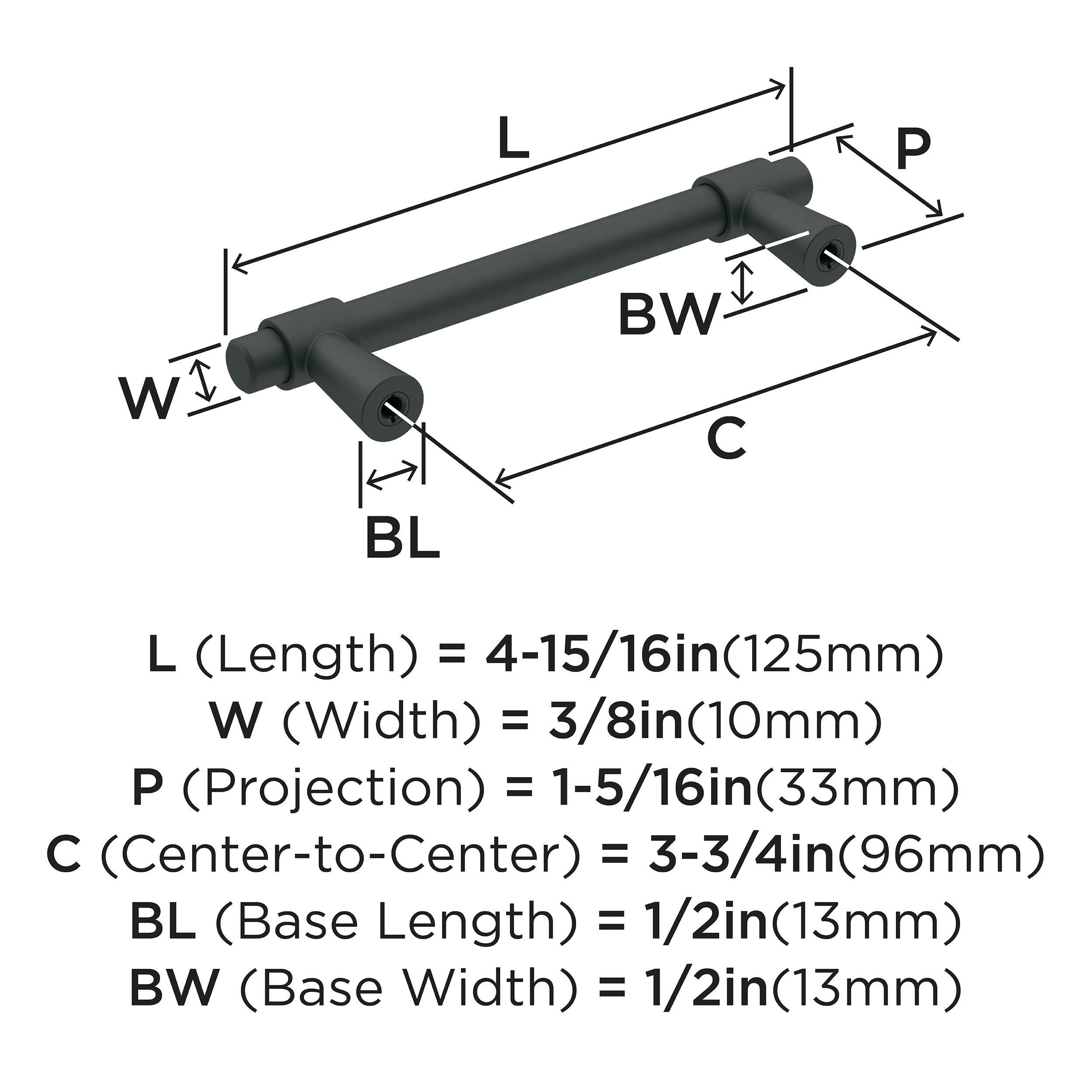The Amerock Destine 3-3/4 in. Center-to-Center Matte Black Cabinet Pull is finished in matte black matte. With its minimalistic forms, the Destine collection imparts mid-century modern flair to any décor with its streamlined, assembled design.