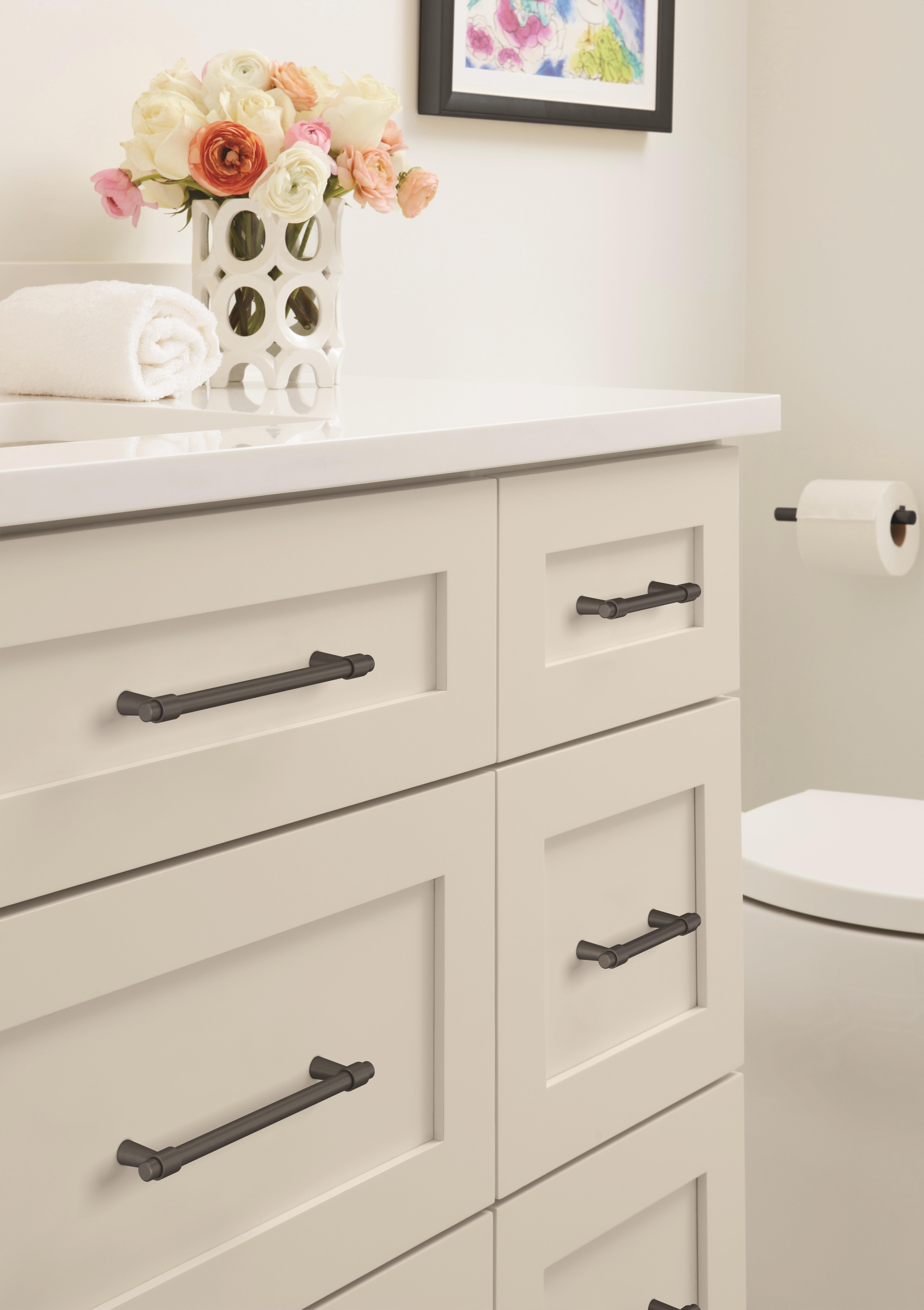 • Complete the look with matching cabinet knobs, drawer pulls and bath hardware from the Amerock Destine collection