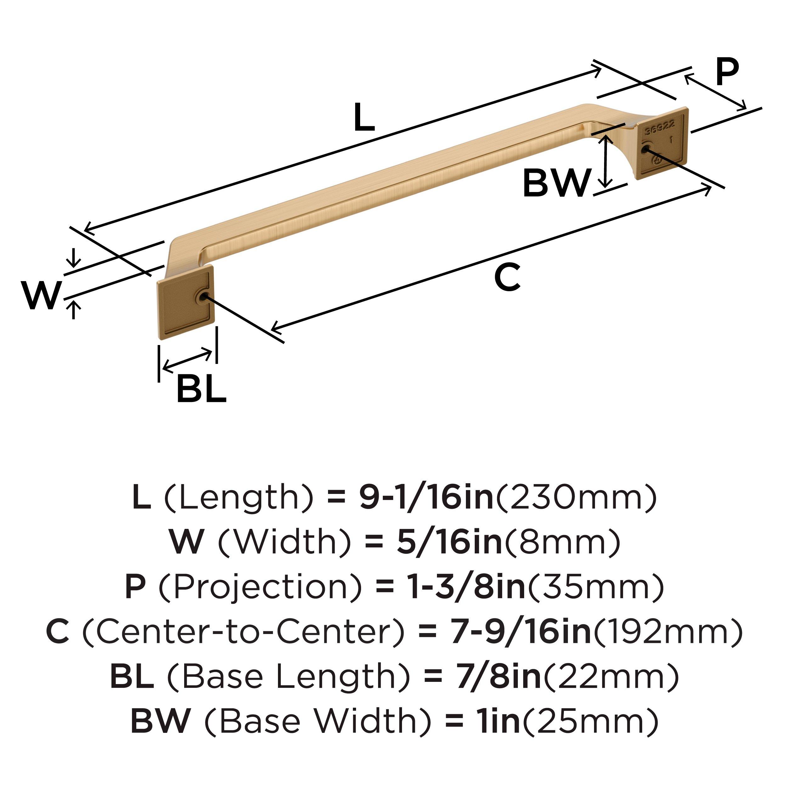 The Amerock Exceed 7-9/16 in. Center-to-Center Champagne Bronze Cabinet Pull is finished in champagne bronze satin. The Exceed collection blends inviting curves with distinctive pedestal edges, creating a composition that is as unexpected as it is timeless.