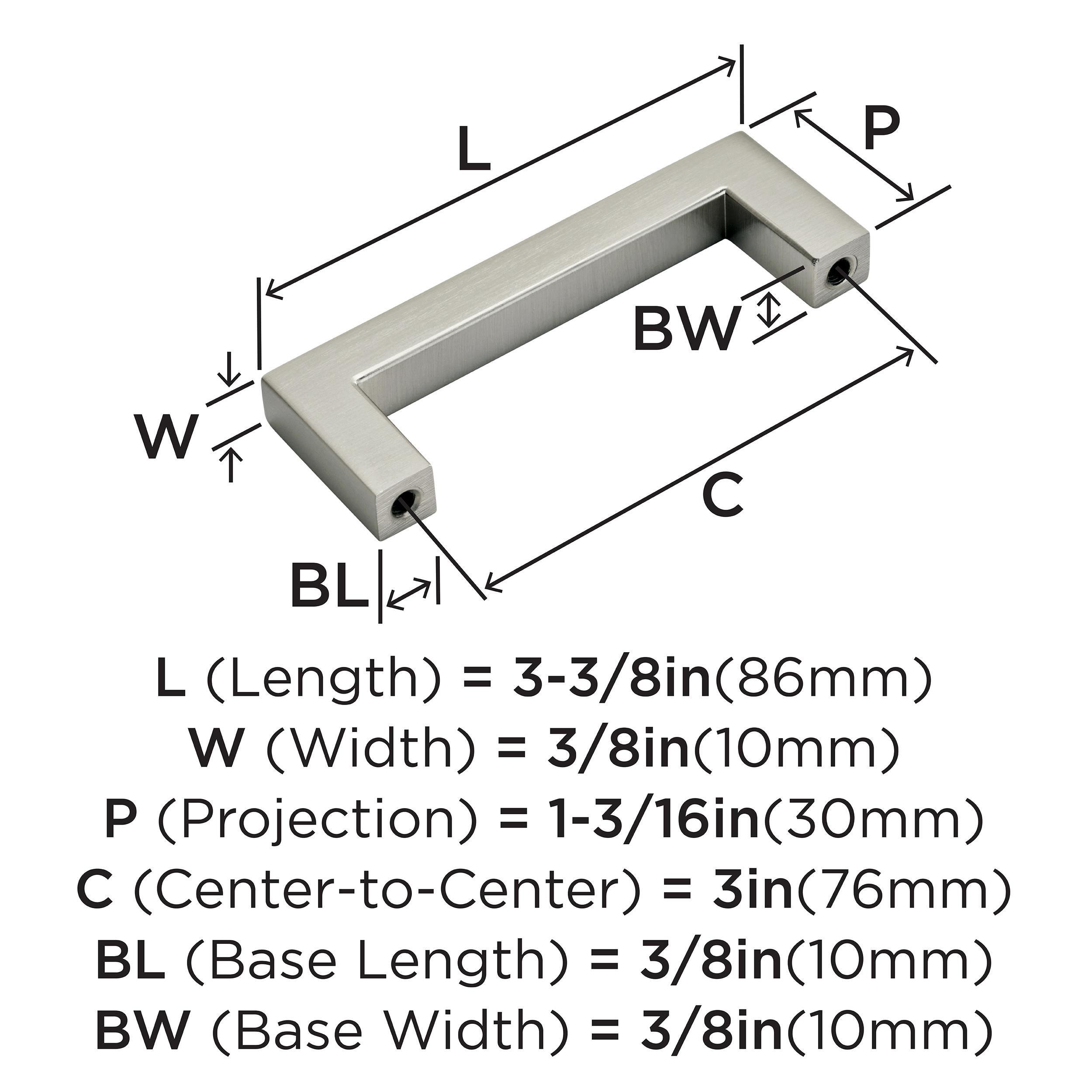 The Amerock Monument 3 in. Center-to-Center Satin Nickel Cabinet Pull is finished in satin nickel satin. The modern square design of Monument offers sleek, sophisticated allure with a contemporary European twist, making a bold statement with a refined touch.