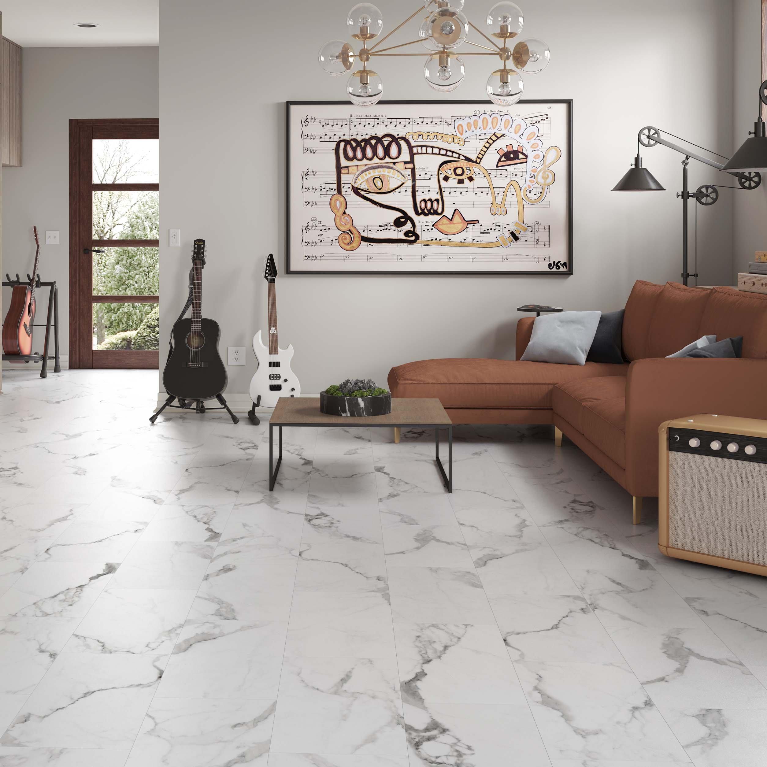 $2.99 / sqft Size: 5mm x 12in x 24in Color: White $60.19 / box