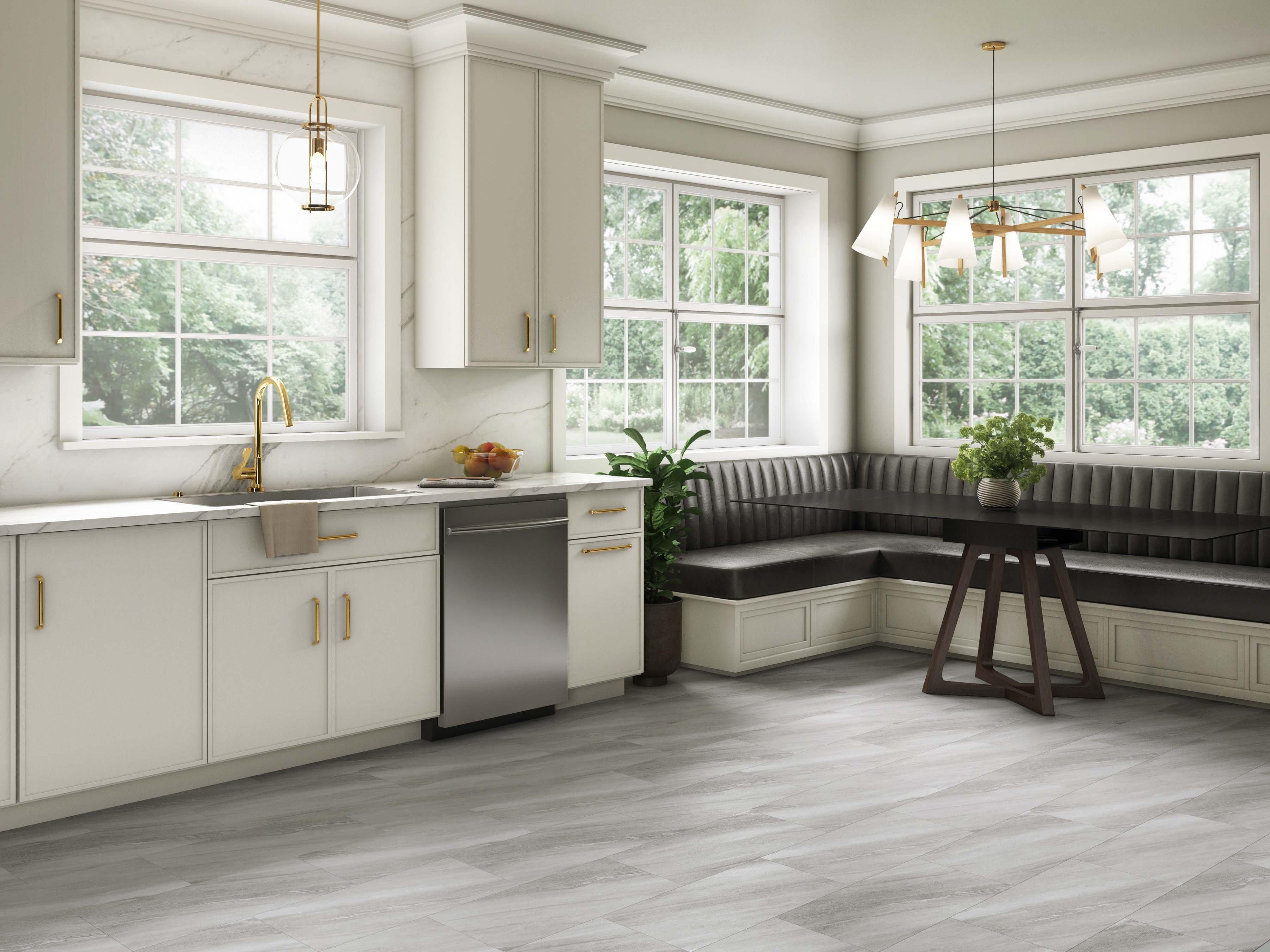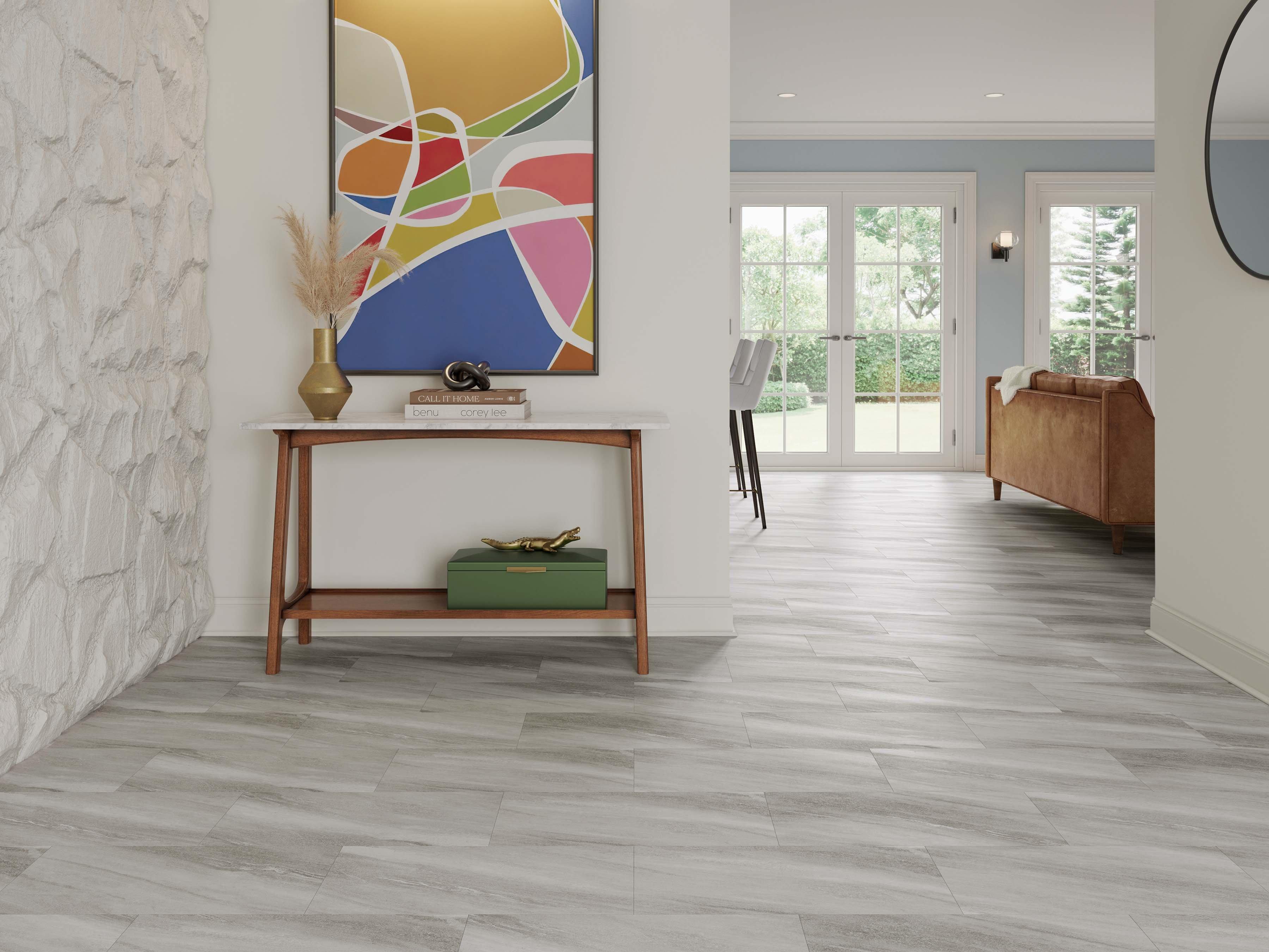 Luxury vinyl flooring is 100% waterproof and stands up to most anything life throws its way! 5mm x 12in x 24in DuraLux Performance Brushed Silver Waterproof Rigid Core Luxury Vinyl Tile - Foam Pad is a highly durable and waterproof flooring option that is suitable for any room in the house, including basements, sunrooms, and full bathrooms. Plus, its rigid stone-based core makes each plank dent-resistant and scratch-resistant, so DuraLux Performance is perfect for high-traffic areas.