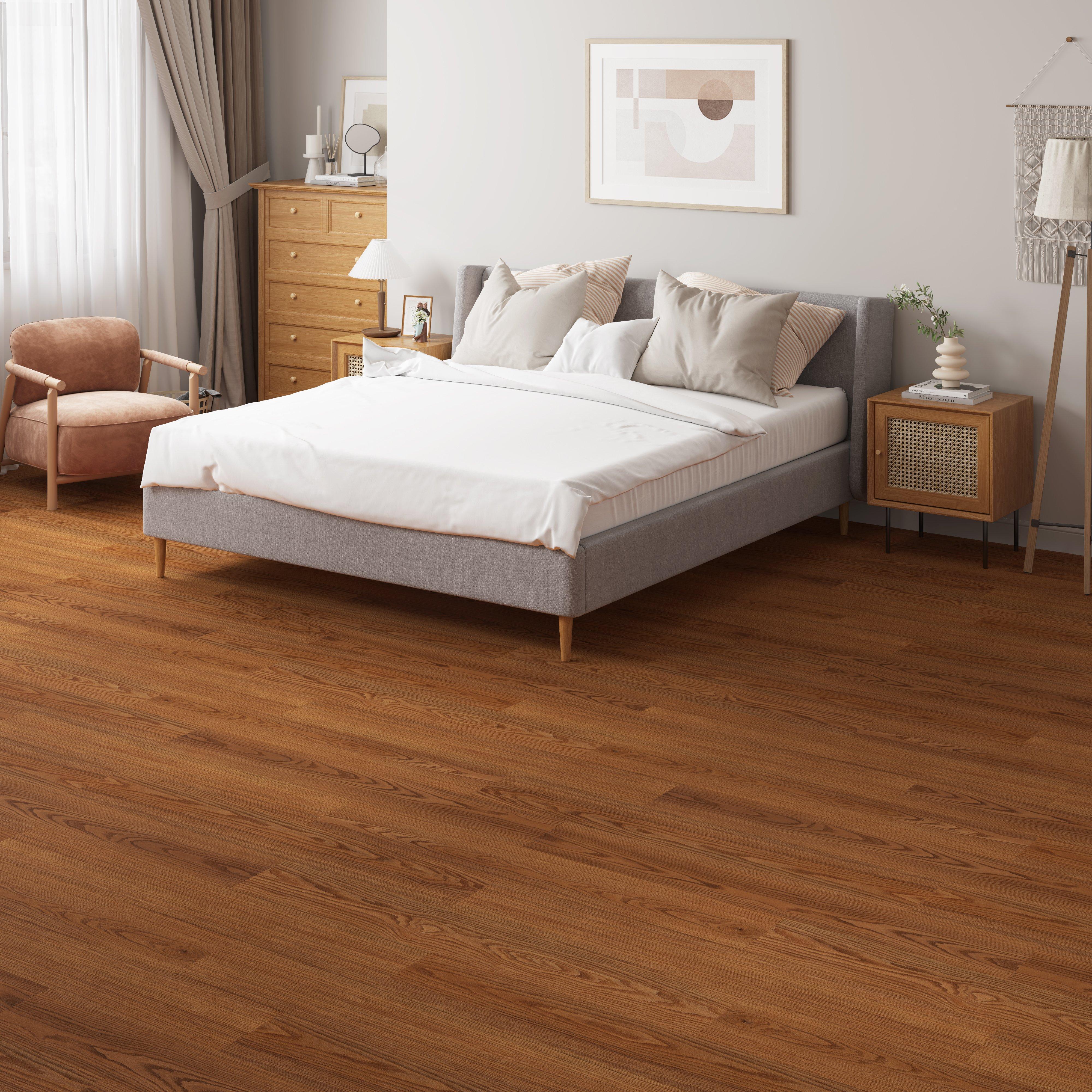 Luxury vinyl flooring is 100% waterproof and stands up to most anything life throws its way! 5mm x 7in x 48in DuraLux Performance Canela Waterproof Rigid Core Luxury Vinyl Plank - Foam Pad is a highly durable and waterproof flooring option that is suitable for any room in the house, including basements, sunrooms, and full bathrooms. Plus, its rigid stone-based core makes each plank dent-resistant and scratch-resistant, so DuraLux Performance is perfect for high-traffic areas.