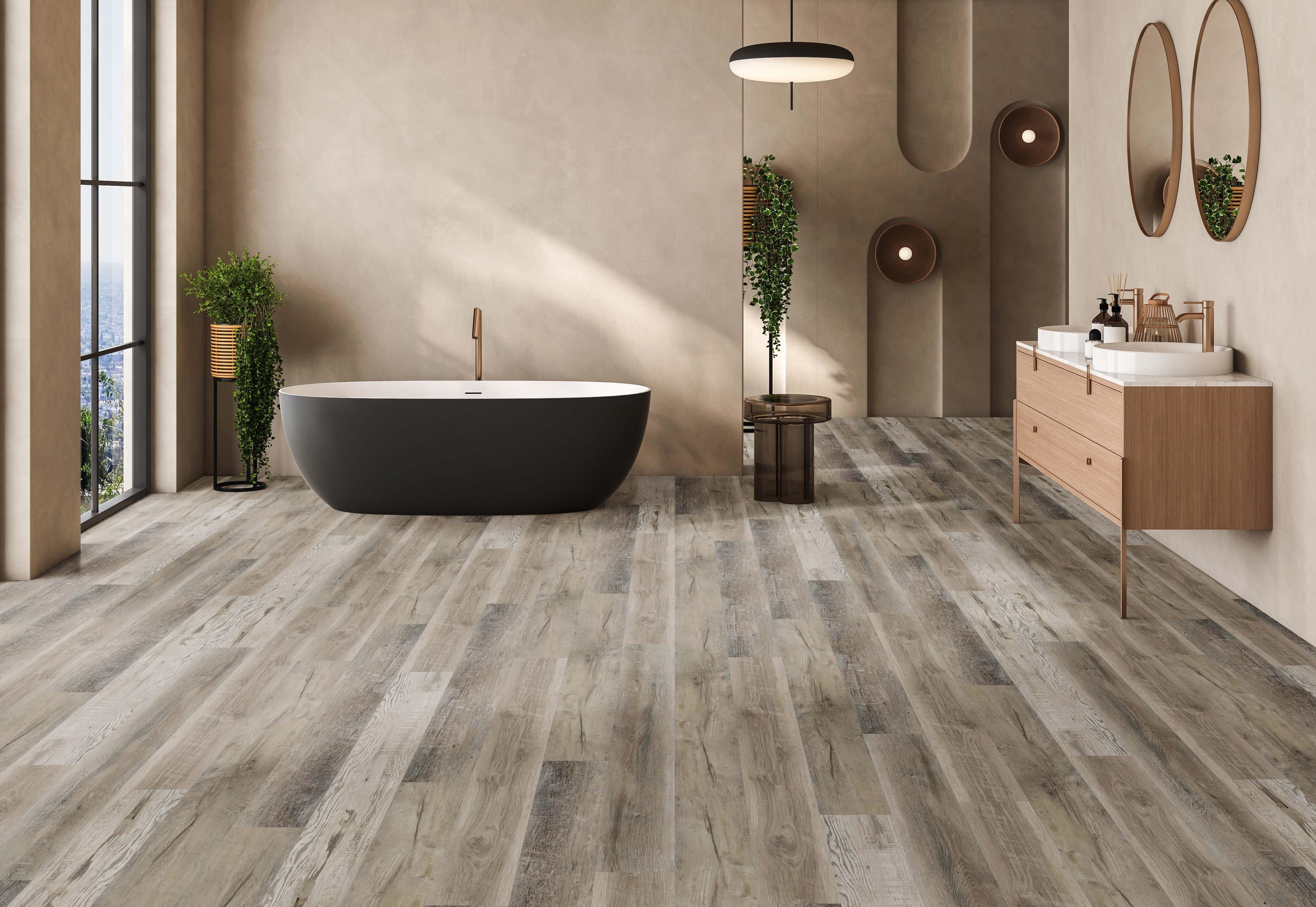 Luxury vinyl flooring is 100% waterproof and stands up to most anything life throws its way! 5mm x 7in x 48in DuraLux Performance Highguard Silver Waterproof Rigid Core Luxury Vinyl Plank - Foam Pad is a highly durable and waterproof flooring option that is suitable for any room in the house, including basements, sunrooms, and full bathrooms. Plus, its rigid stone-based core makes each plank dent-resistant and scratch-resistant, so DuraLux Performance is perfect for high-traffic areas.