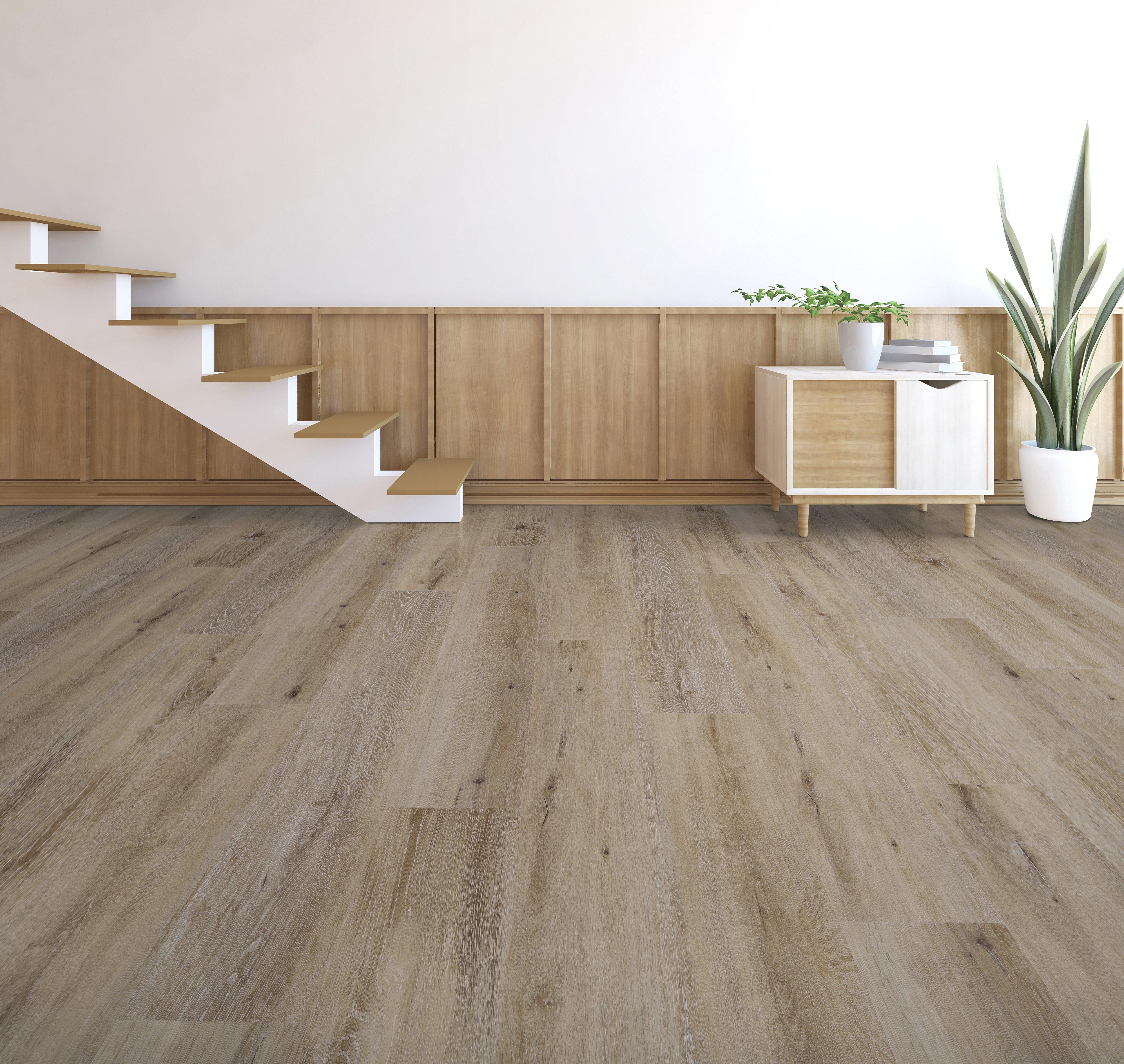 Luxury vinyl flooring is 100% waterproof and stands up to most anything life throws its way! 5mm x 7in x 48in DuraLux Performance Timber Saddle Waterproof Rigid Core Luxury Vinyl Plank - Foam Pad is a highly durable and waterproof flooring option that is suitable for any room in the house, including basements, sunrooms, and full bathrooms. Plus, its rigid stone-based core makes each plank dent-resistant and scratch-resistant, so DuraLux Performance is perfect for high-traffic areas.