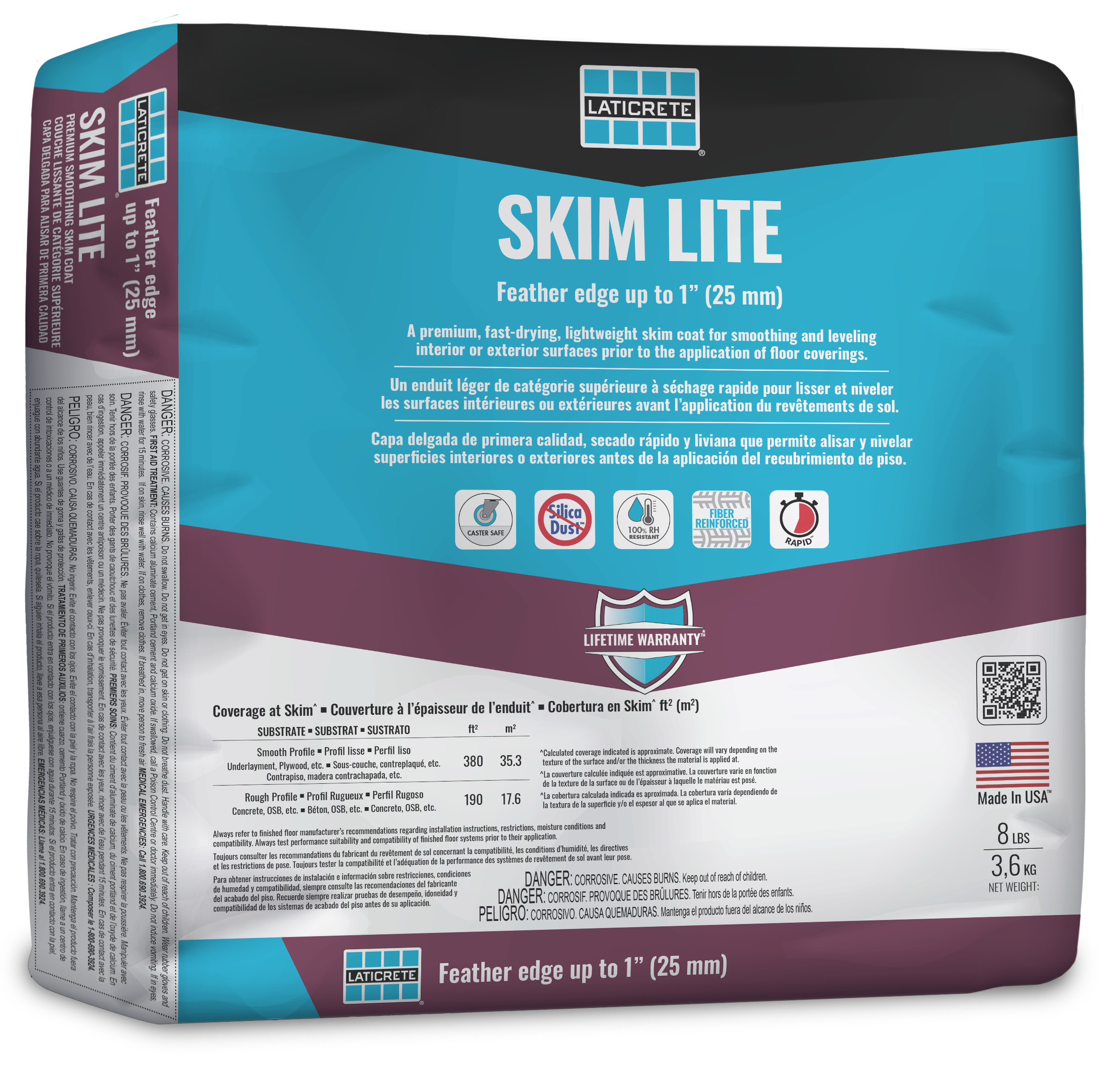 Lifetime SystemSkim Lite is a premium quality, high yielding, fast-drying, fiber reinforced, cement-based underlayment designed for skim-coating, smoothing and leveling prior to the application of floor coverings. Skim Lite offers the customer light weight properties while maintaining strong surface, being rated for caster wheel use. With installer safety in mind, this product contains no respirable crystalline silica levels that exceed the OSHA action level*.