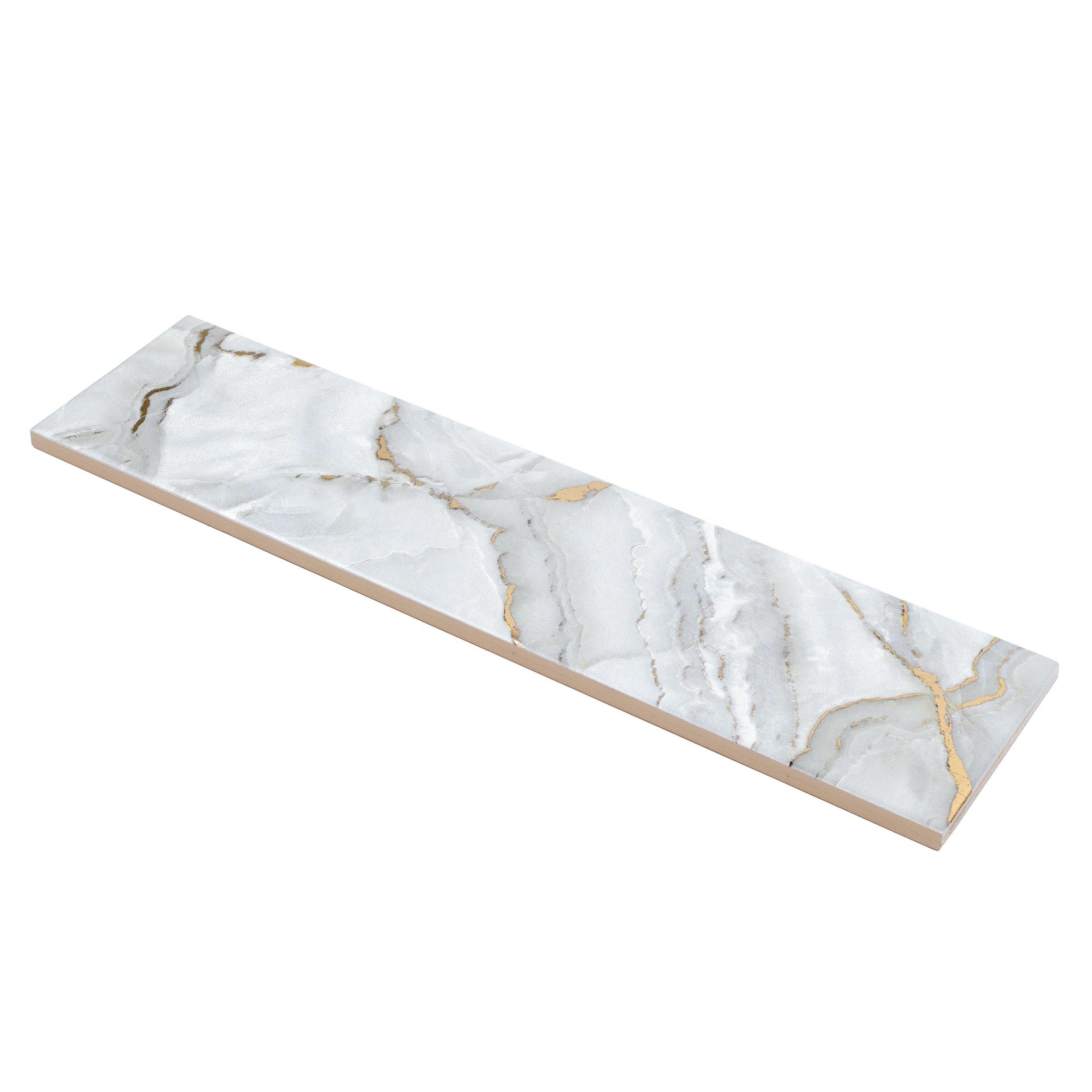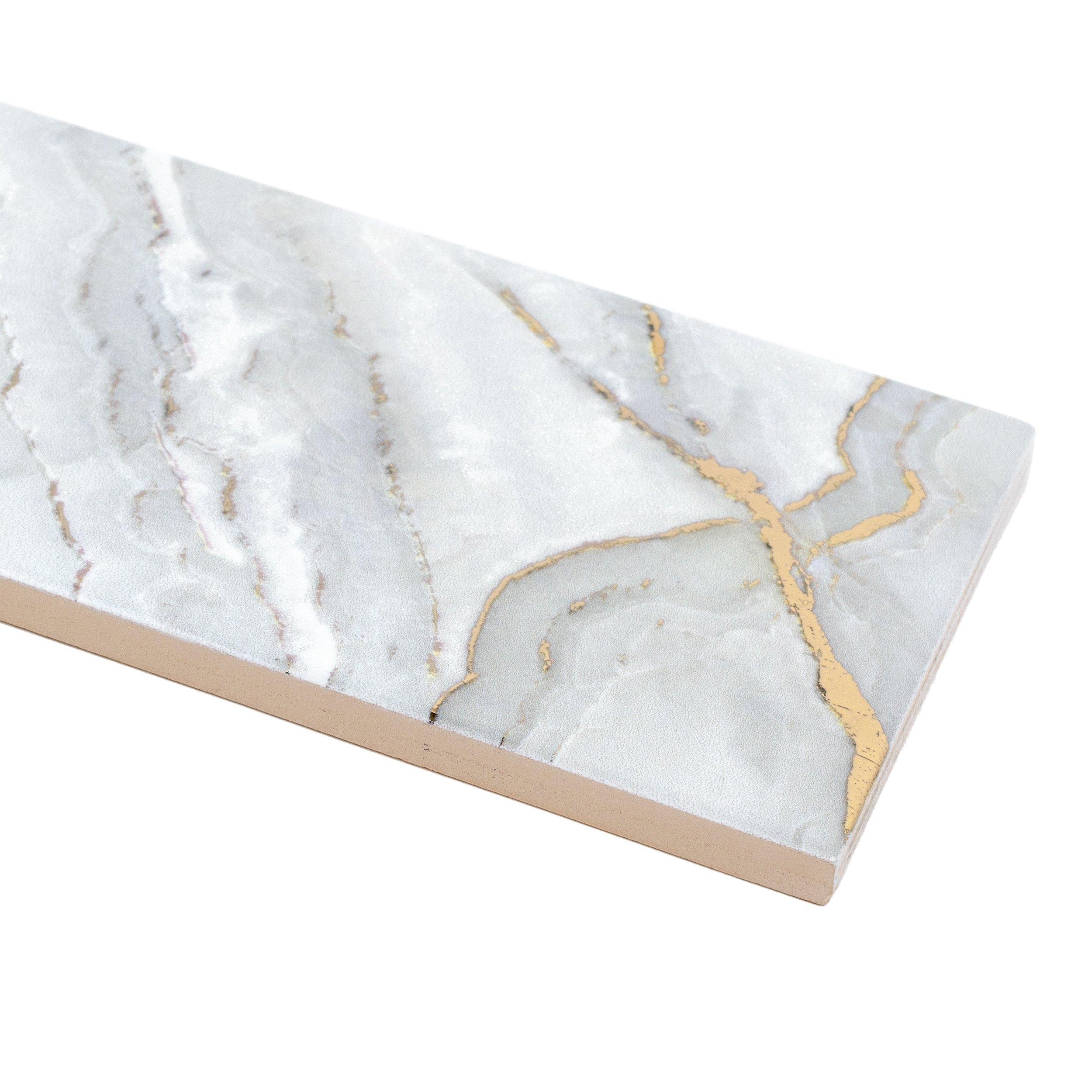 Personalize your space with the Empress Gold Polished Ceramic Tile. This white high gloss finish tile will make a great impact in small areas like the bathroom, den, or other overlooked spaces.