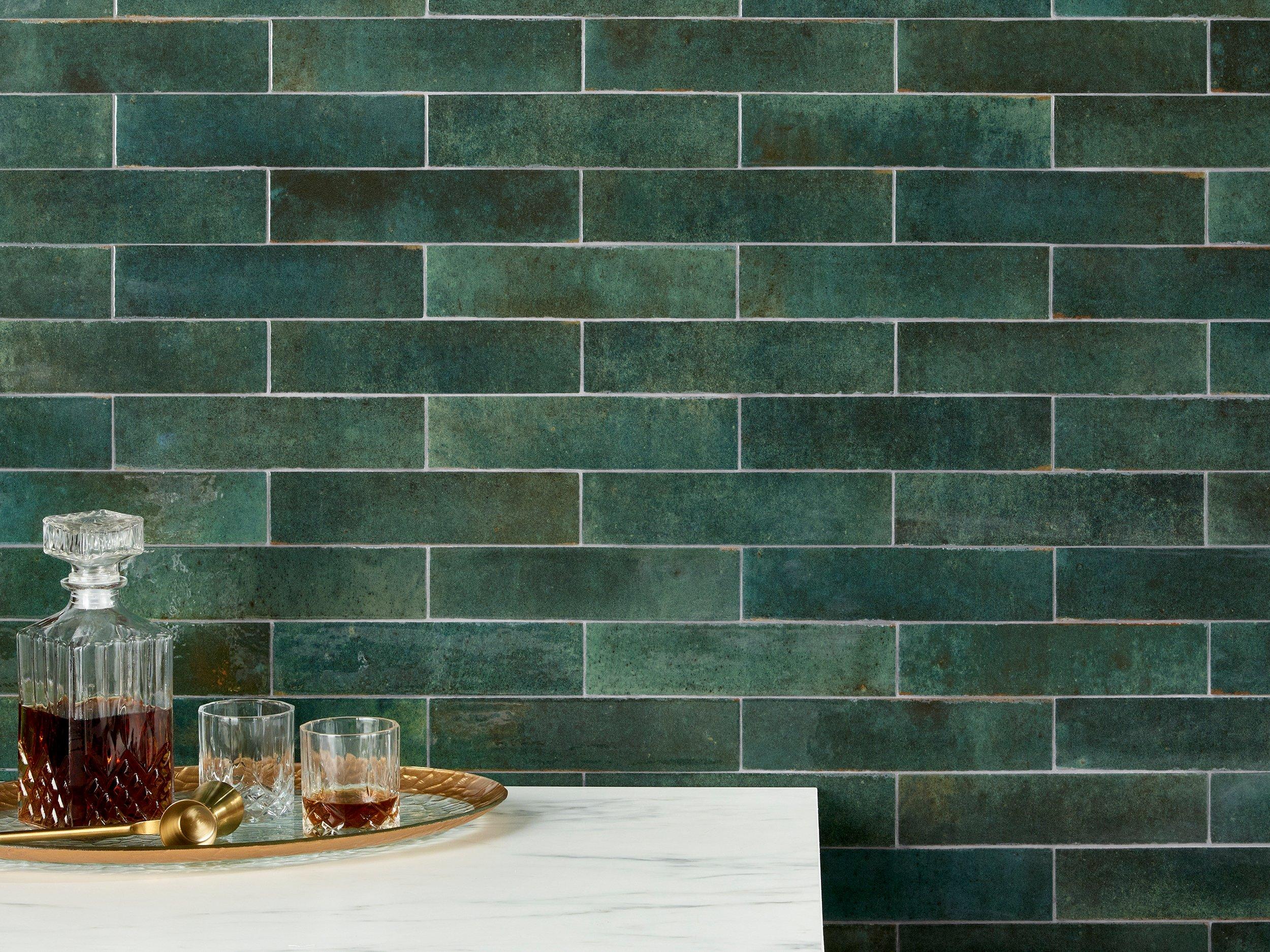 Personalize your space with the Juniper Polished Porcelain Tile. This green high gloss finish tile will make a great impact in small areas like the bathroom, den, or other overlooked spaces.
