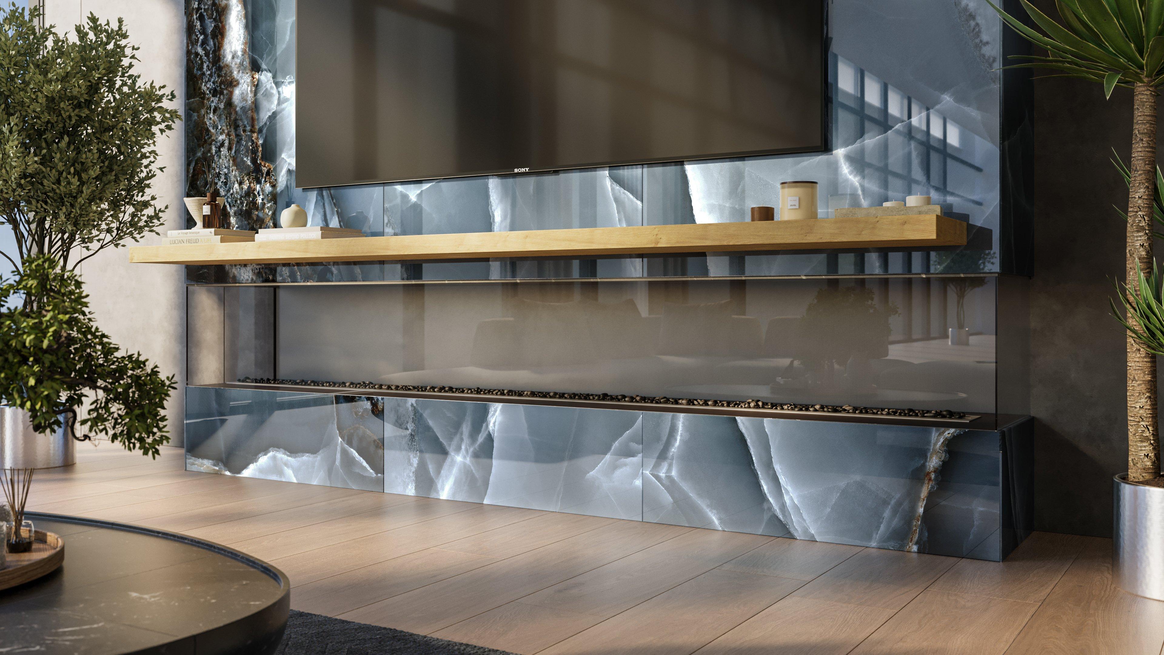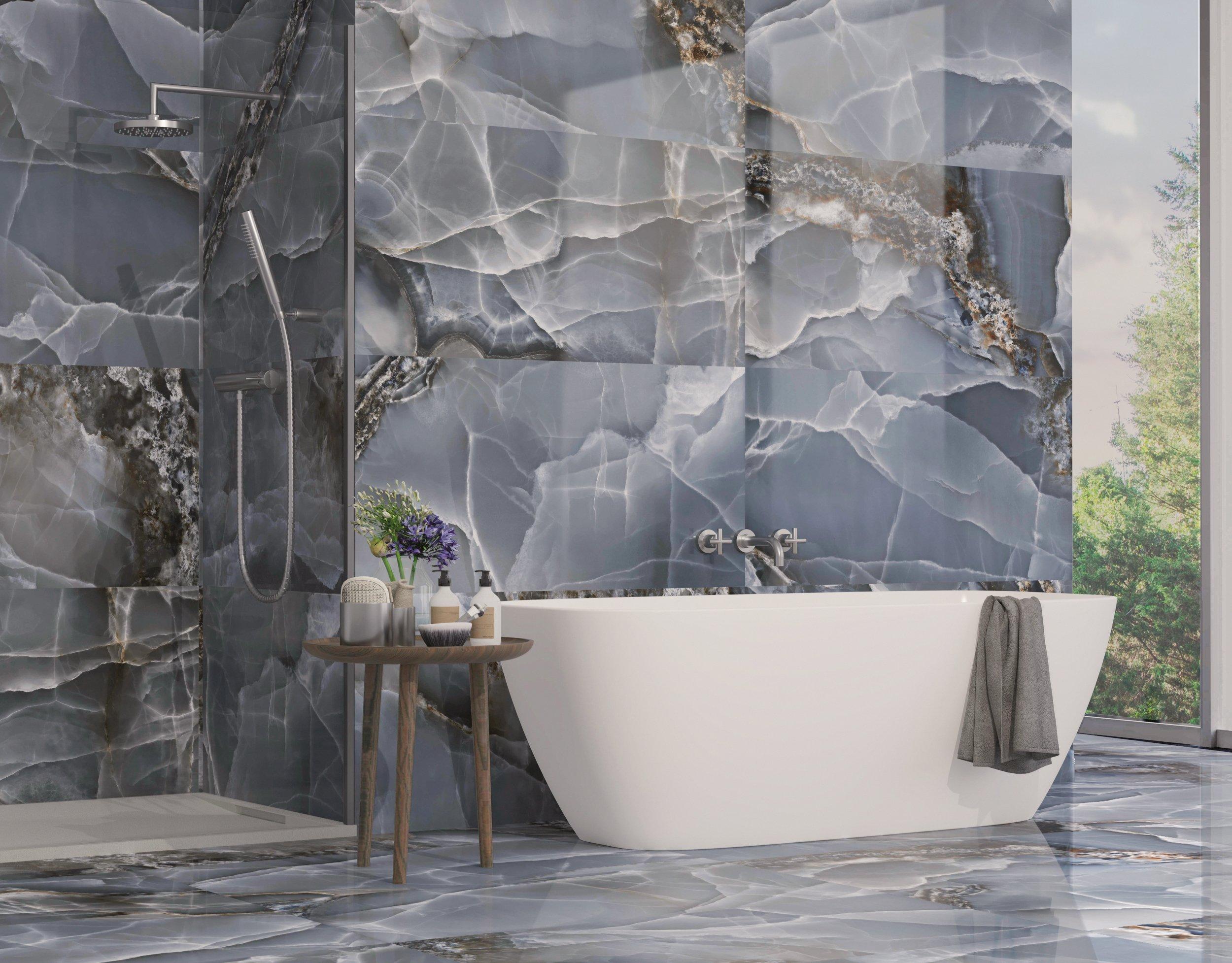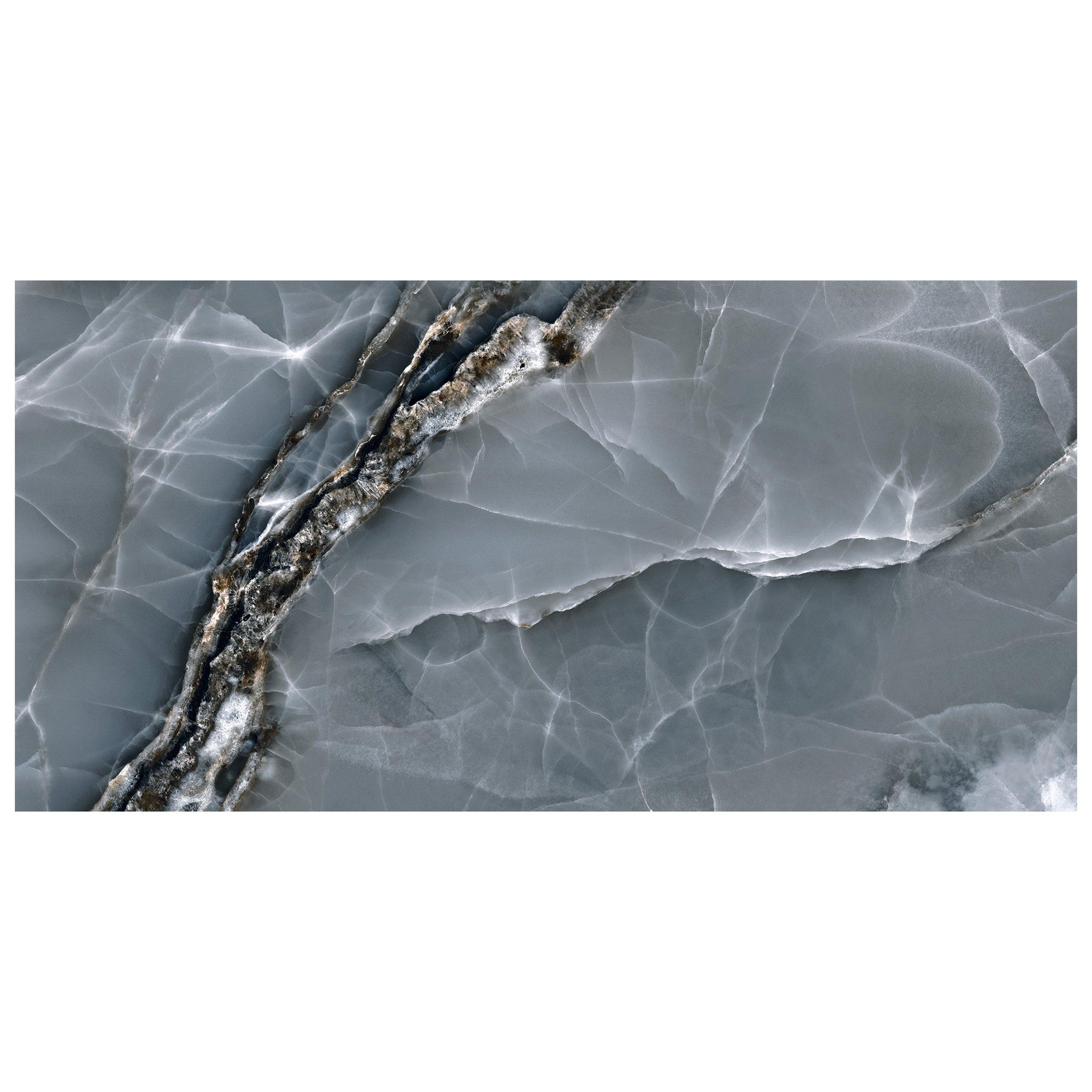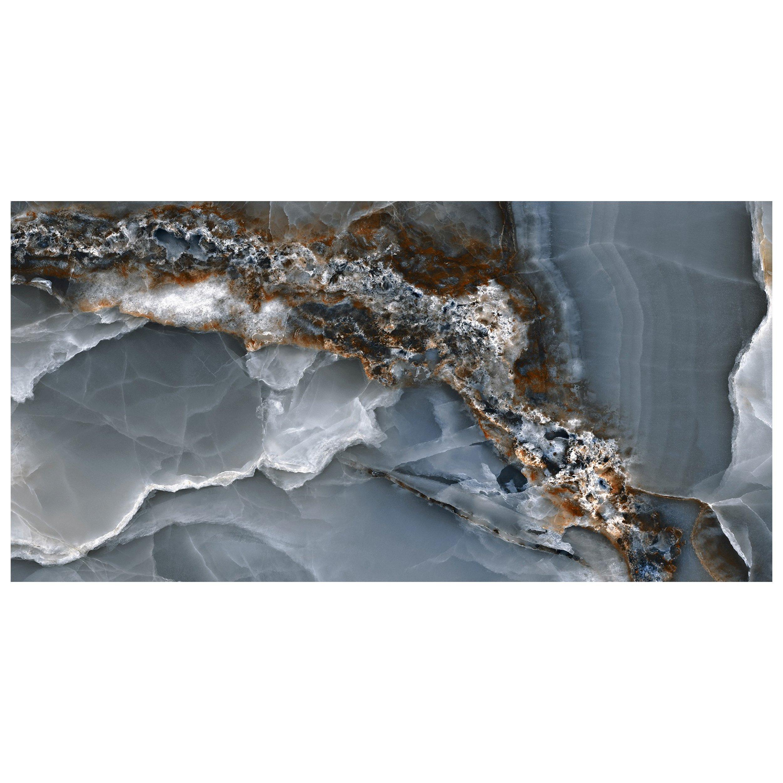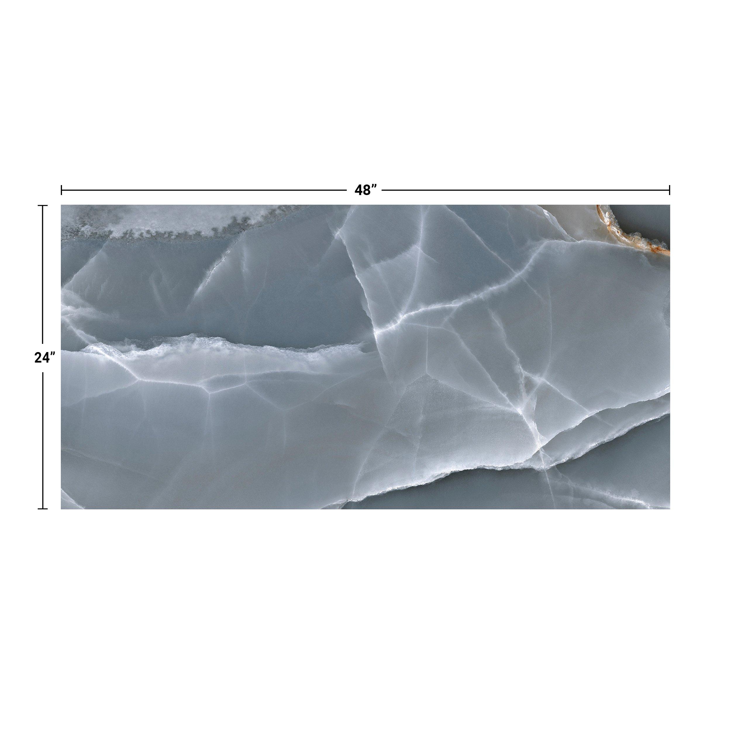 With a polished or high gloss finish, this blue Belize Azul Polished Porcelain Tile is 24 x 48.