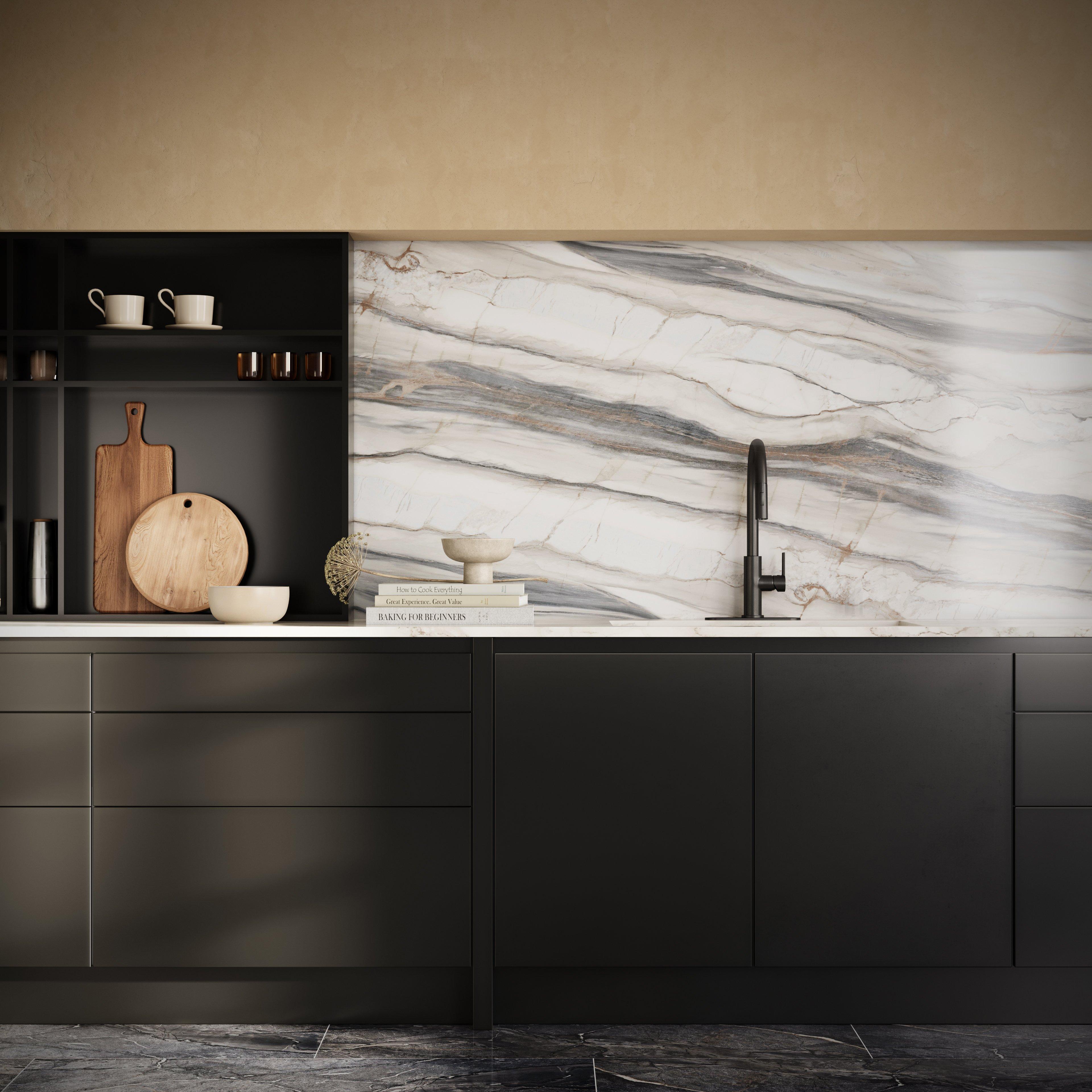 Create a whole new look or enhance your existing style with the easy-to-install Giovanni Verde Polished Porcelain Tile fromFloor & Decor’s exclusive Maximo tile. There’s no need to demolish your old tile with this thin tile, you can save time, stress, and mess! Simply install this over your existing tile (or the existing subfloors, too) for a quick update. It’s easy to clean and perfect in areas like sunrooms, mudrooms, kitchens, or bathrooms!  Not only does it eliminate the time, stress, and mess of traditional tile installation, it offers a stylish and durable solution for any space.