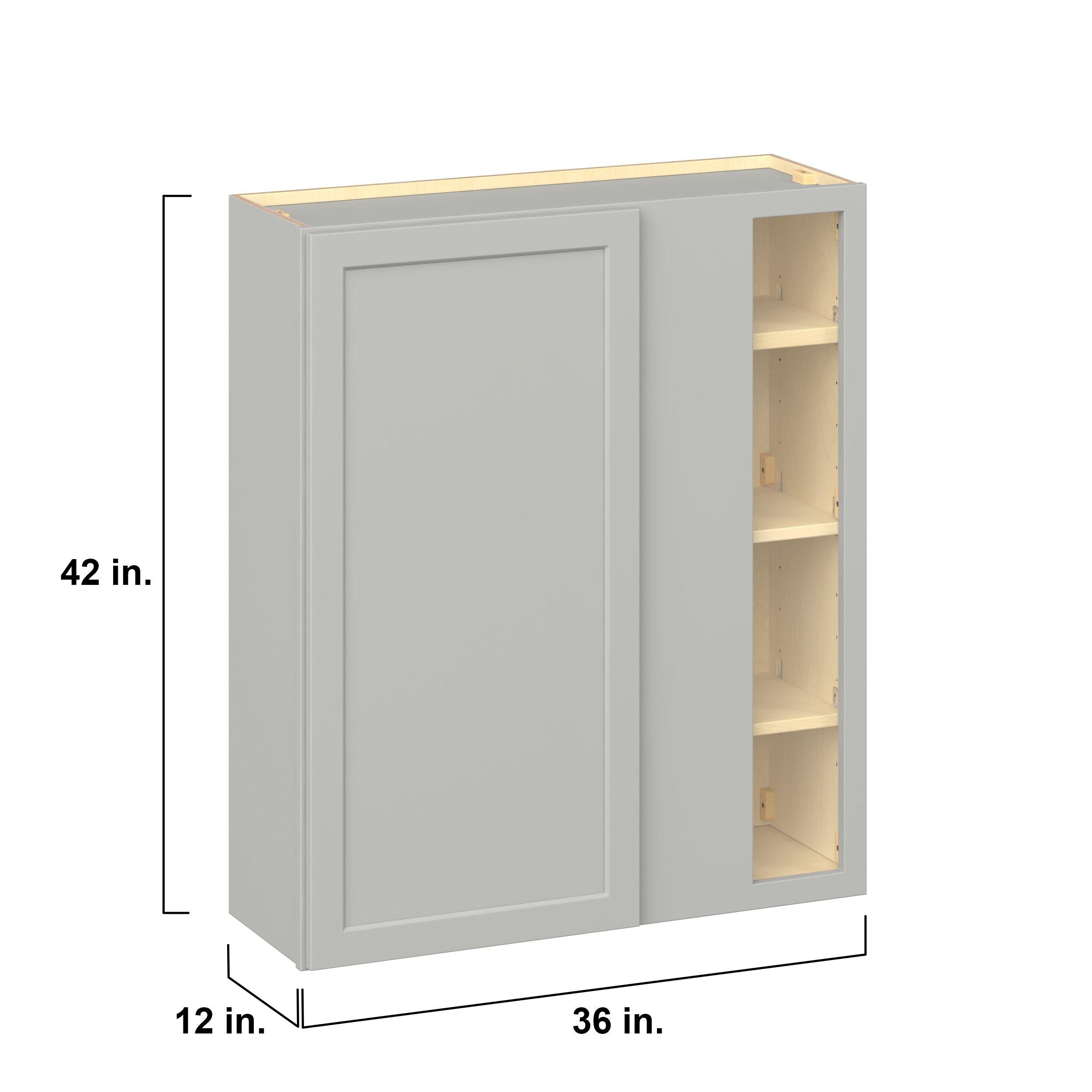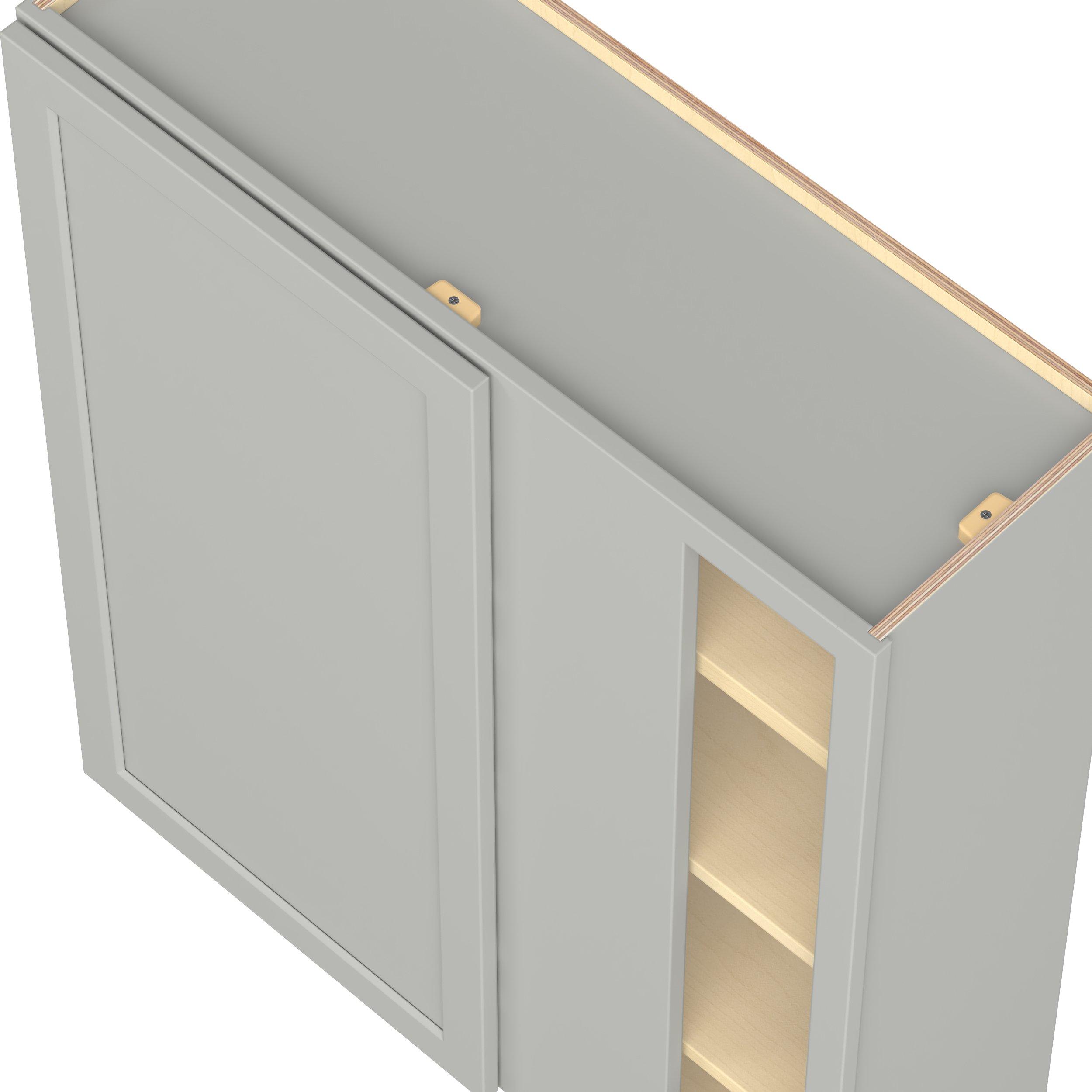 Embrace the timeless charm of the Baxley classic shaker door style. Studio Design Collection Baxley 36 in. Painted Whisper Gray Right Blind Corner Wall Cabinet features all plywood construction, offering both superior strength and sophistication to your space. Featuring 5-piece MDF doors and dovetail drawer joints, these cabinets offer durability and elegance. Baxley classic shaker door style is designed to retain its stunning appearance and withstand the test of time.