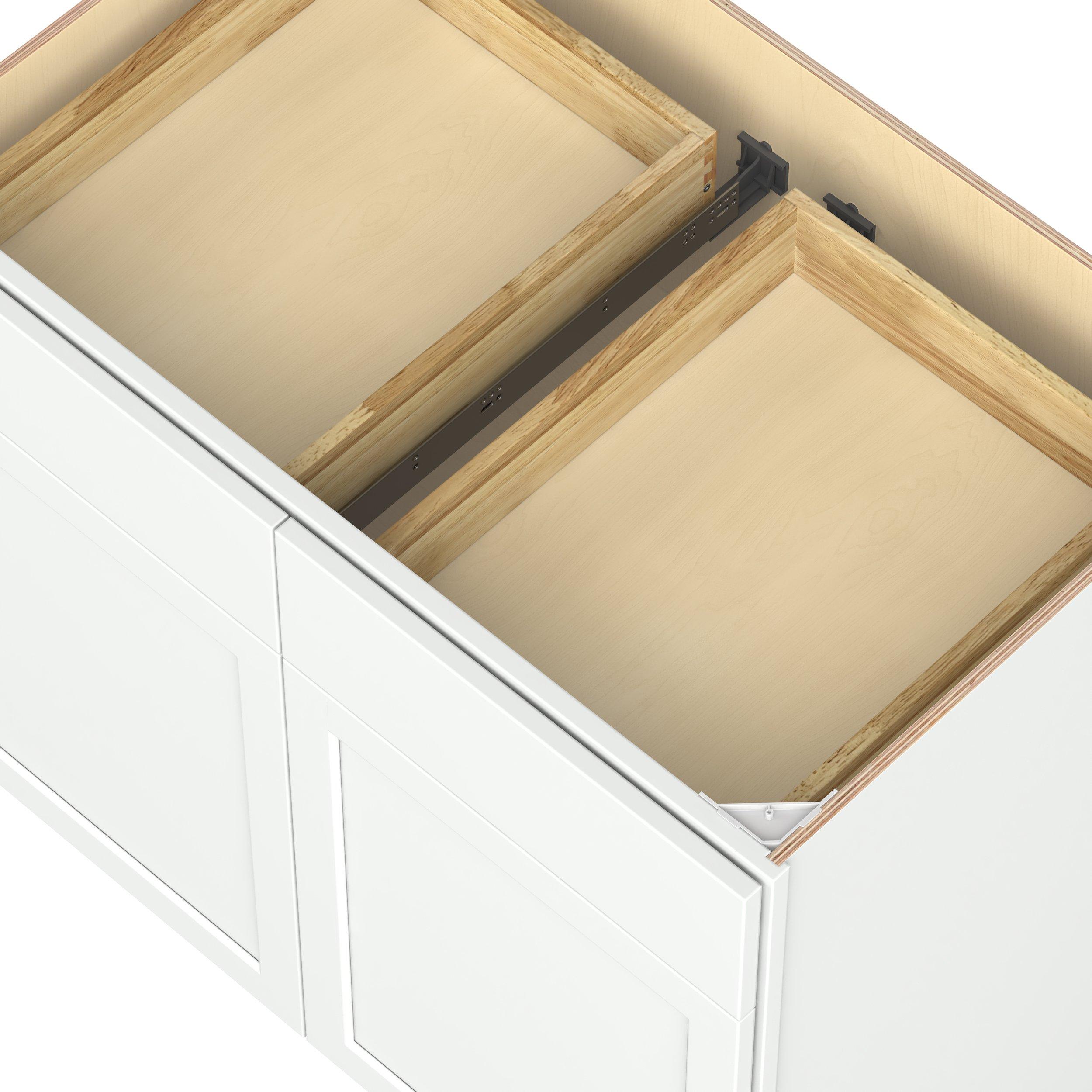 Embrace the timeless charm of the Baxley classic shaker door style. Studio Design Collection Baxley 39 in. Painted Pure White Door and Drawer Base Cabinet features all plywood construction, offering both superior strength and sophistication to your space. Featuring 5-piece MDF doors and dovetail drawer joints, these cabinets offer durability and elegance. Baxley classic shaker door style is designed to retain its stunning appearance and withstand the test of time.