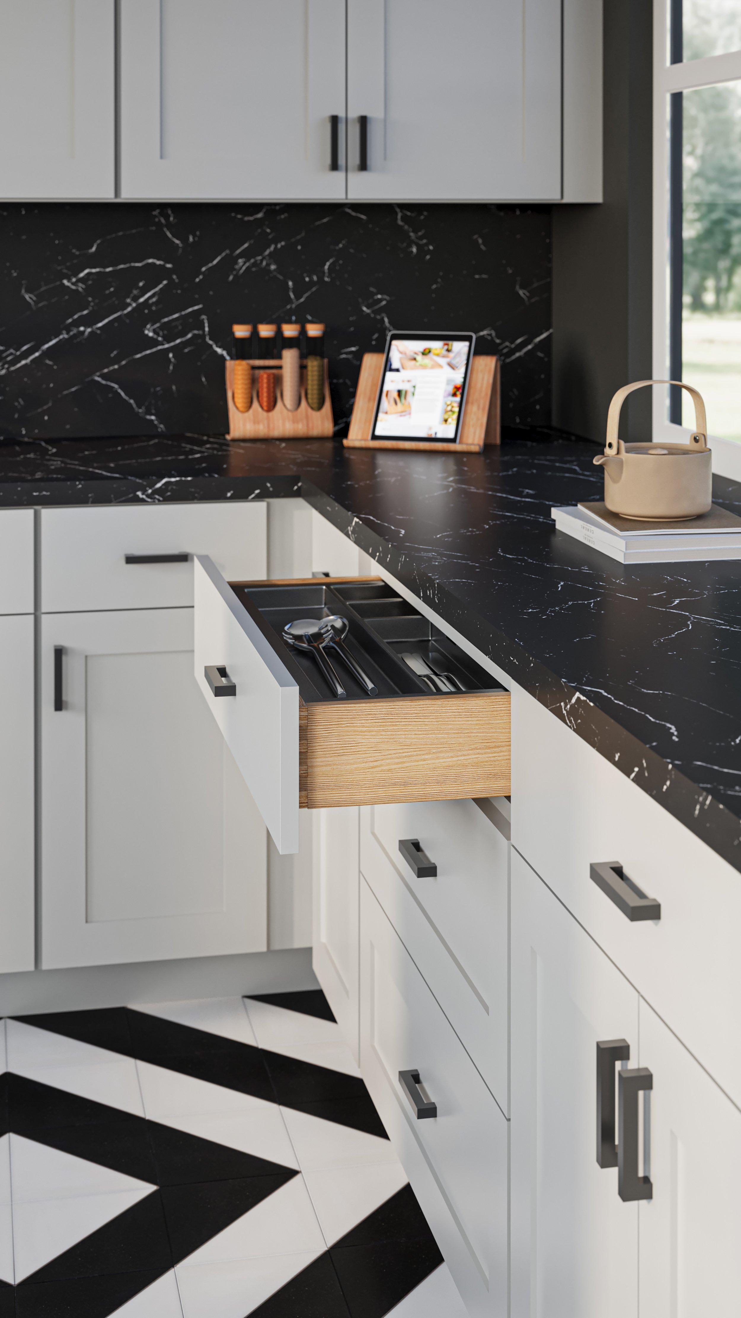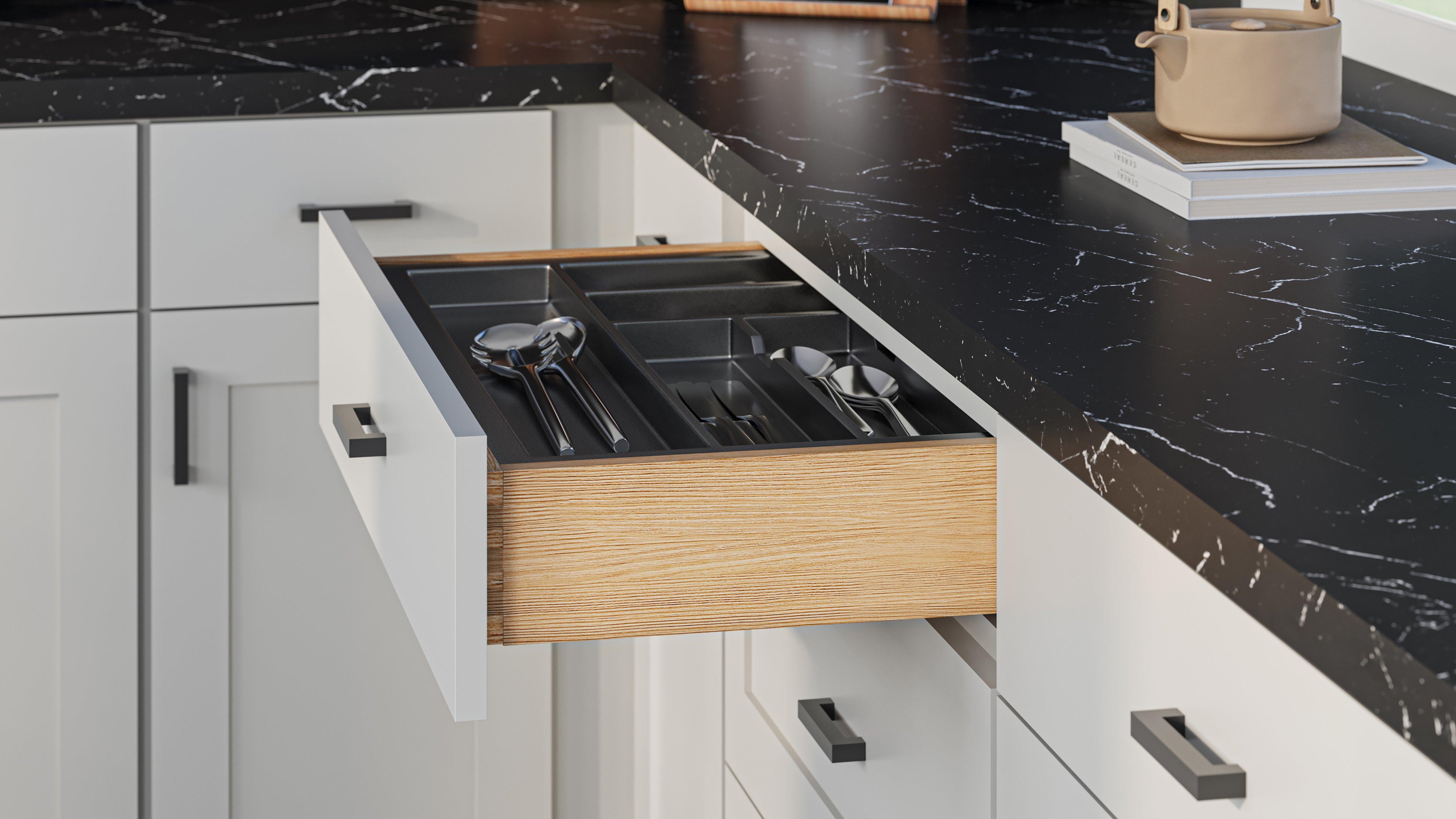 - Frameless cabinet with full-access construction to provide a wider opening.