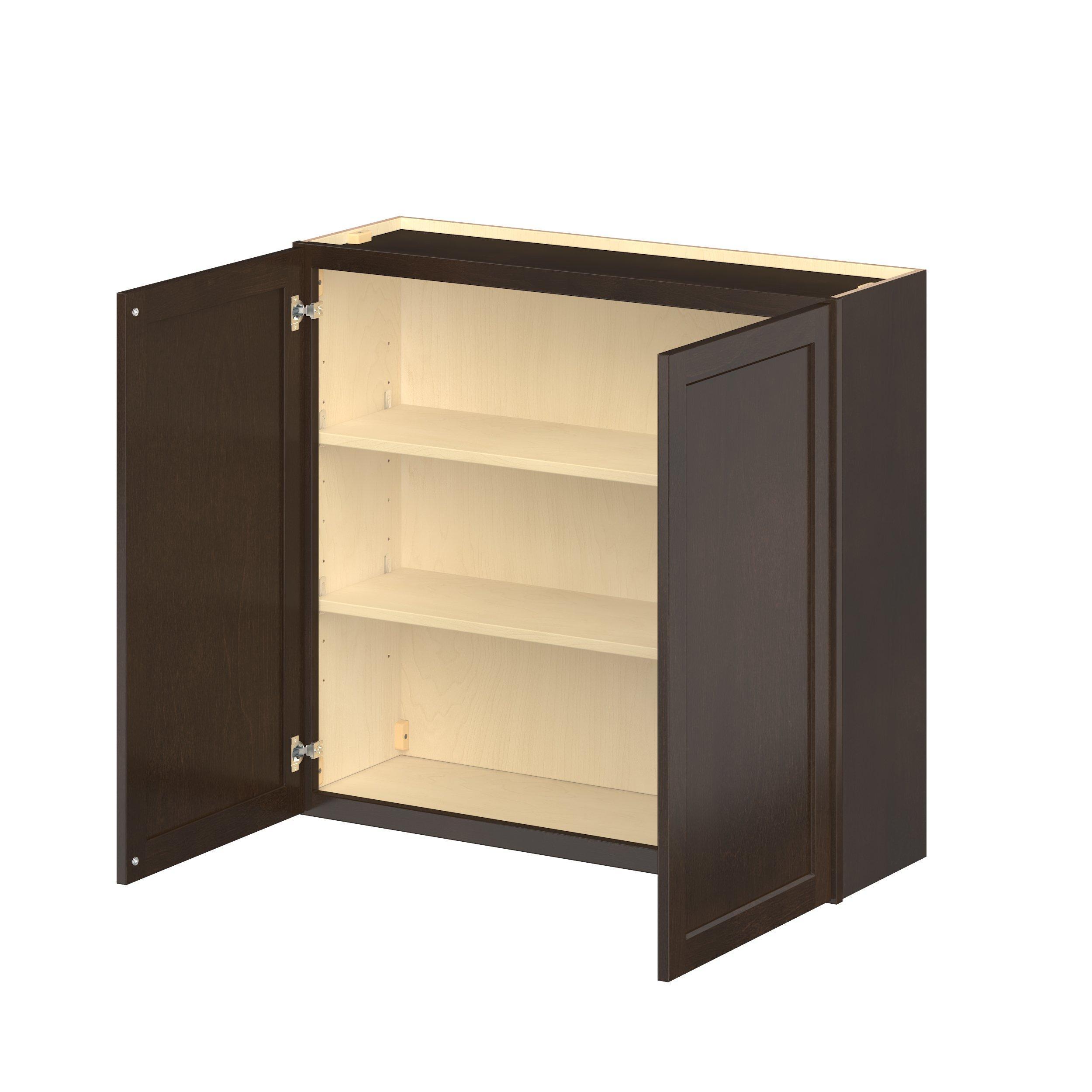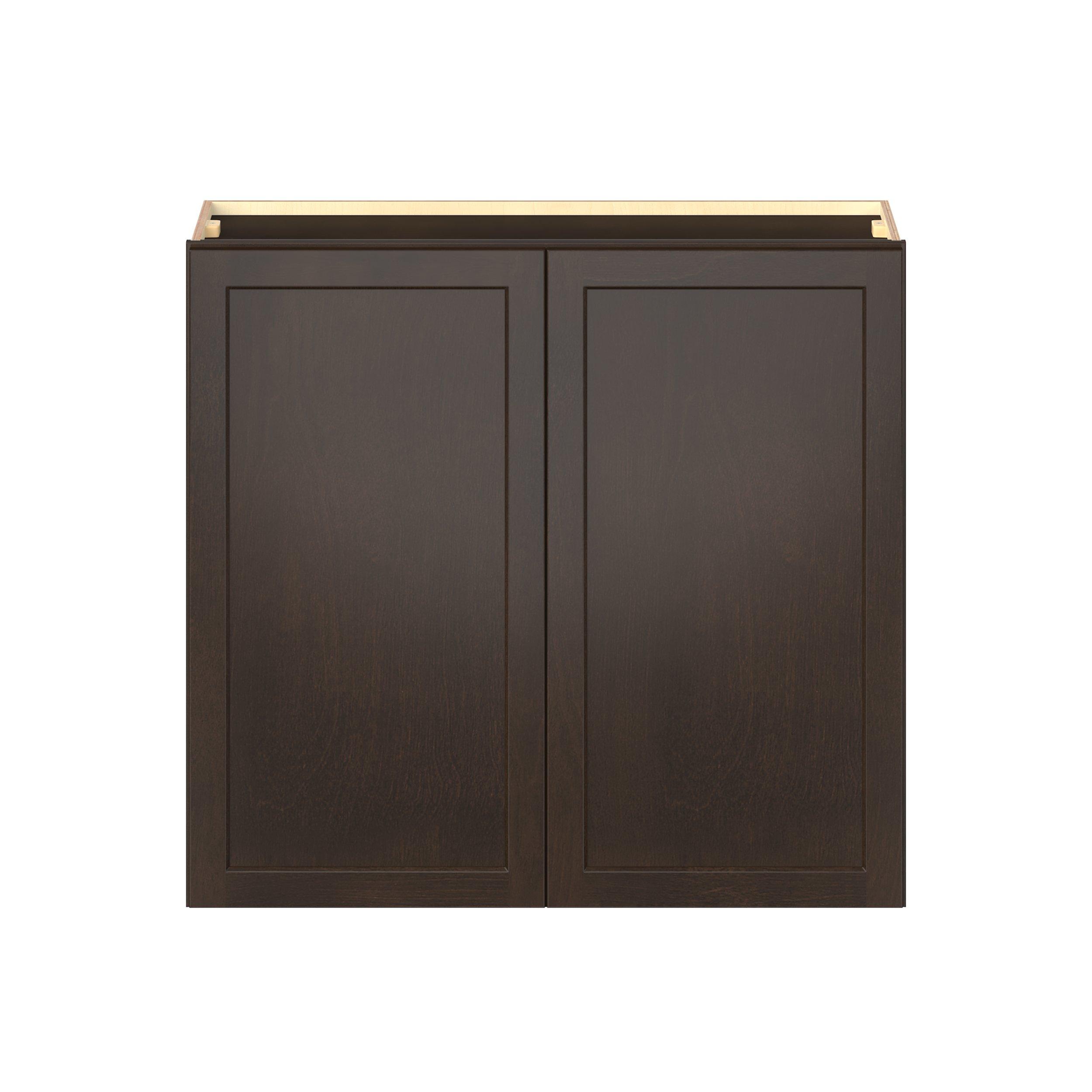 Embrace the timeless charm of the Baxley classic shaker door style. Studio Design Collection Baxley 39 in. Stained Cocoa Door Wall Cabinet features all plywood construction, offering both superior strength and sophistication to your space. Featuring 5-piece solid wood doors and dovetail drawer joints, these cabinets offer durability and elegance. Baxley classic shaker door style is designed to retain its stunning appearance and withstand the test of time.