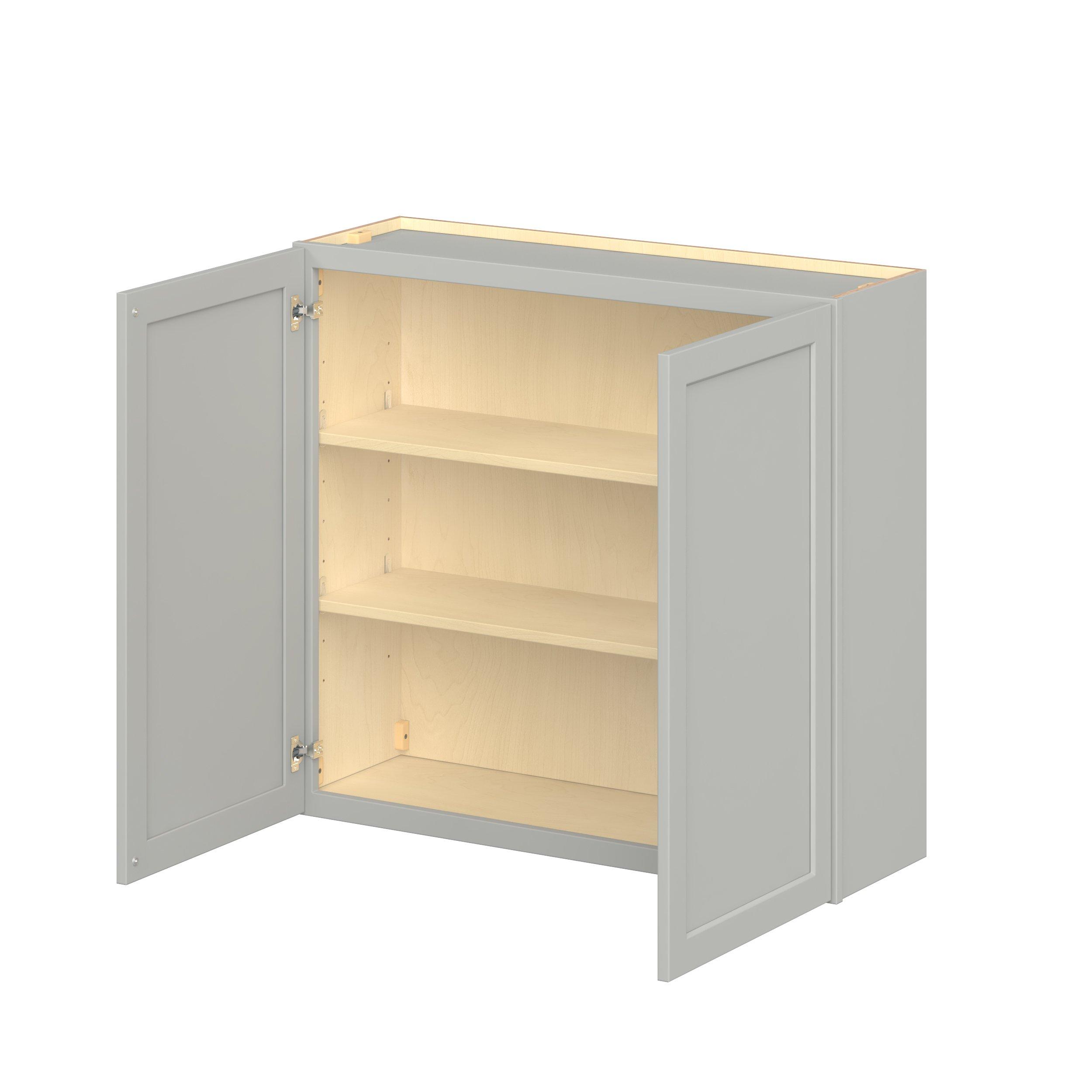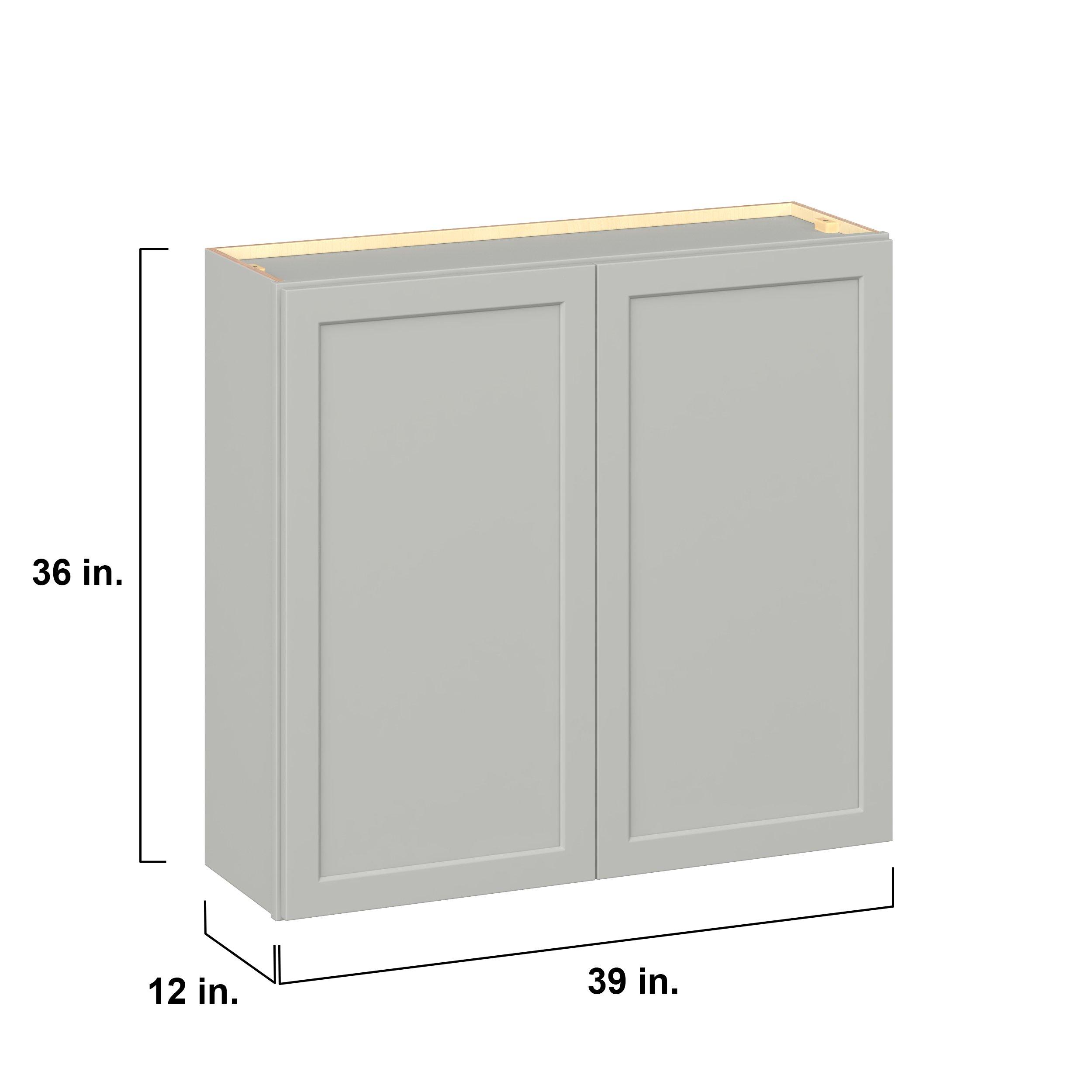 Embrace the timeless charm of the Baxley classic shaker door style. Studio Design Collection Baxley 39 in. Painted Whisper Gray Door Wall Cabinet features all plywood construction, offering both superior strength and sophistication to your space. Featuring 5-piece MDF doors and dovetail drawer joints, these cabinets offer durability and elegance. Baxley classic shaker door style is designed to retain its stunning appearance and withstand the test of time.