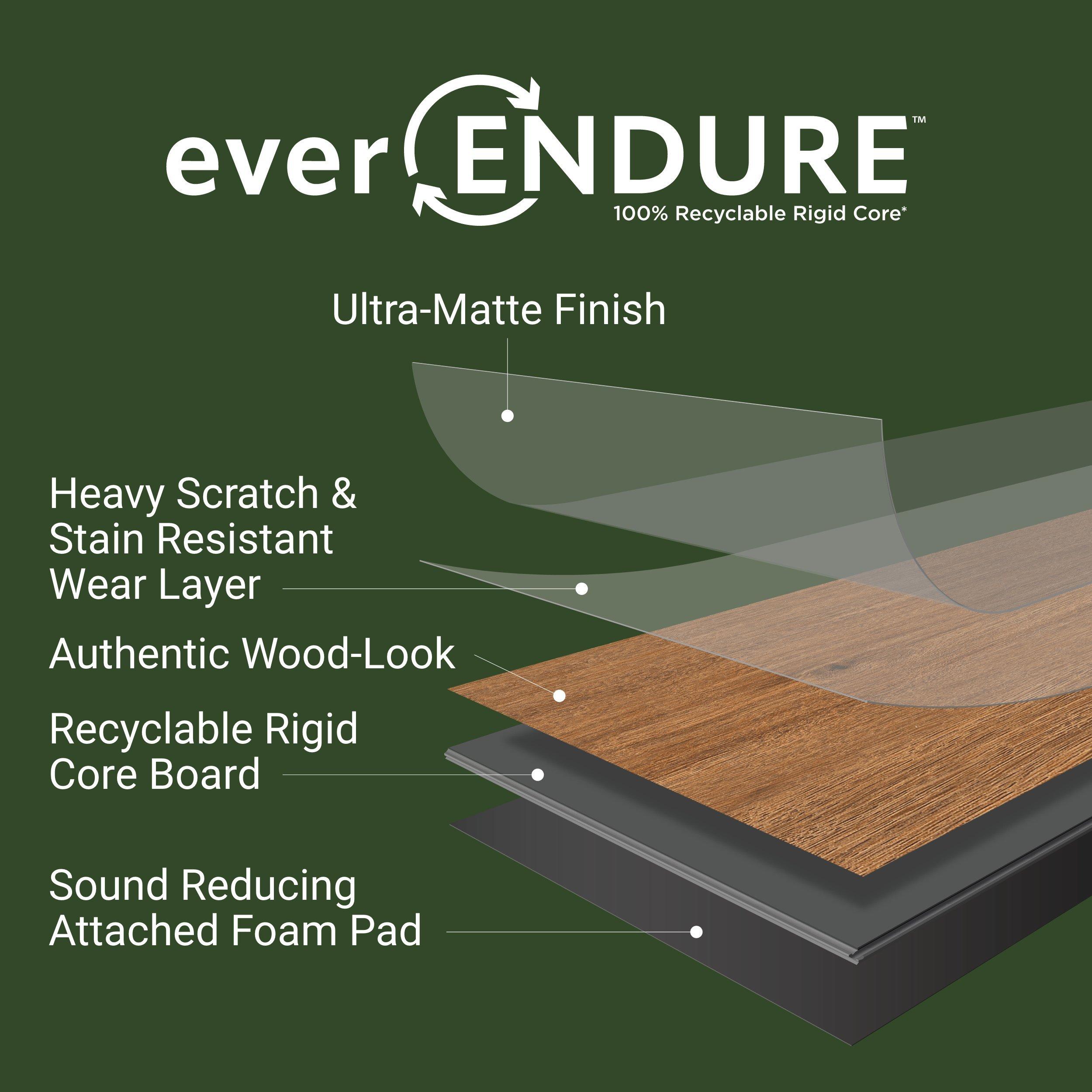 Built to handle real life, EverENDURE features a tough 20mil wear layer that resists scratches, stains, and everyday wear. Its 100% waterproof construction is perfect for bathrooms, kitchens, basements, and beyond—wherever messes happen.