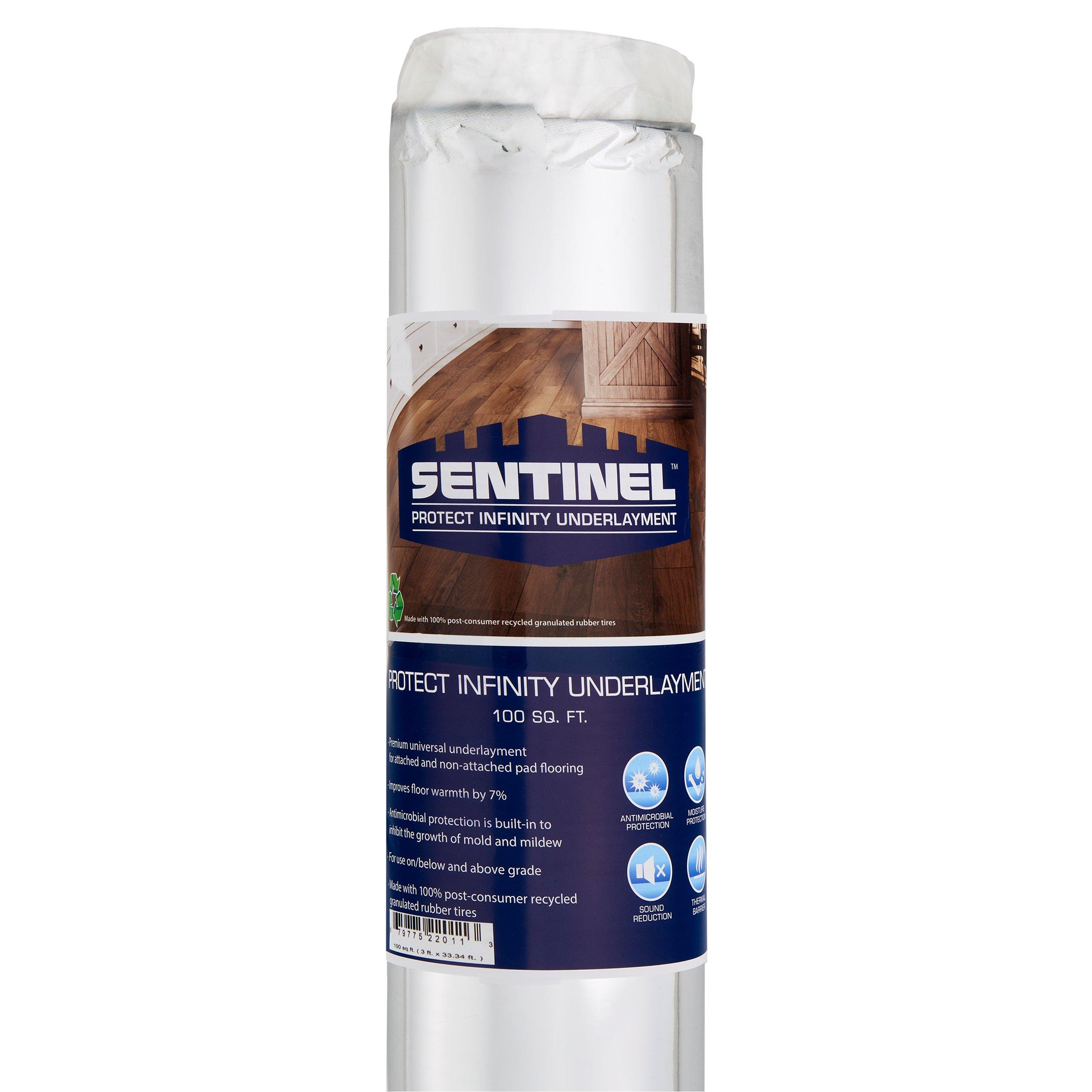 Sentinel Protect Infinity 100sqft Underlayment is a high-performance acoustic and moisture barrier solution designed to enhance your vinyl, laminate, or engineered wood flooring. Made with recycled rubber and renewable materials, it delivers superior sound absorption, crush resistance, and mold protection—perfect for both floating and glue-down installations.